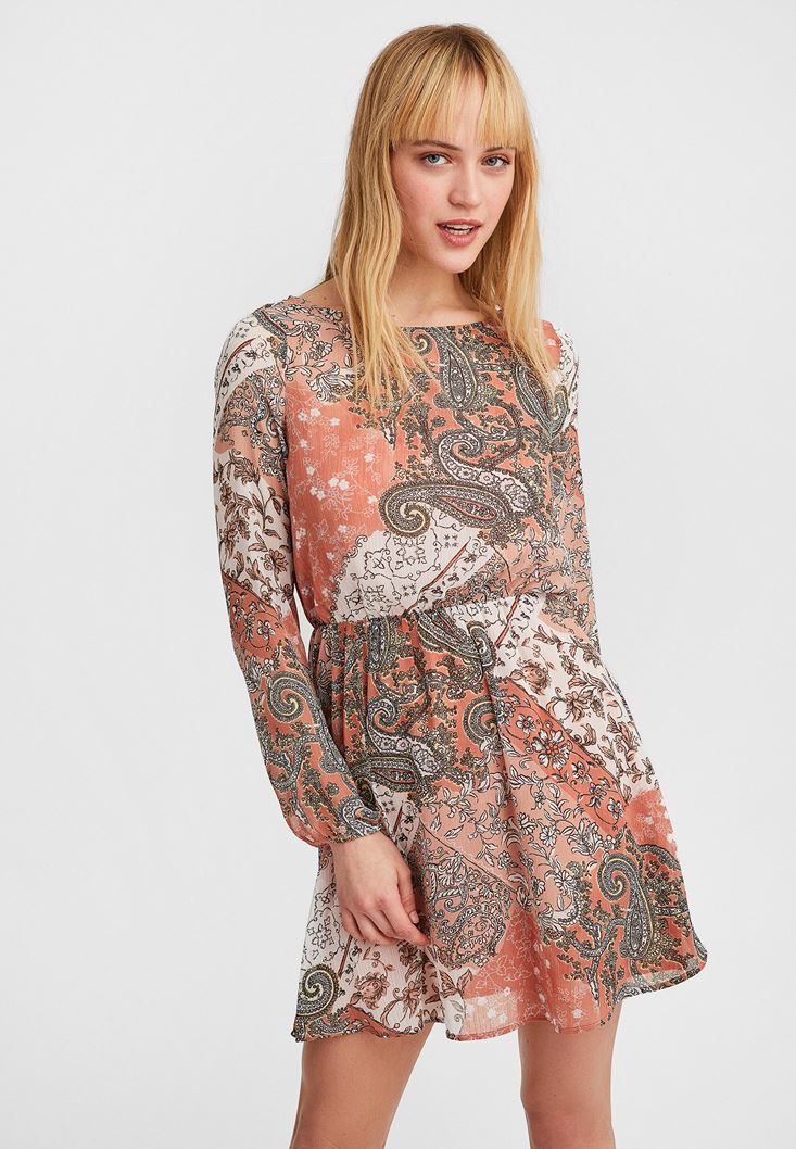 Çok Renkli Desenli Mini Elbise