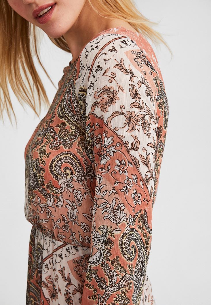 • Bayan Çok Renkli Desenli Mini Elbise