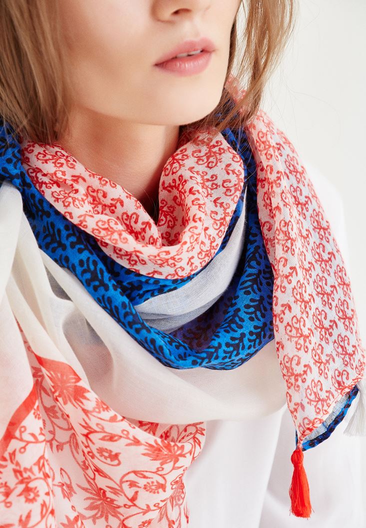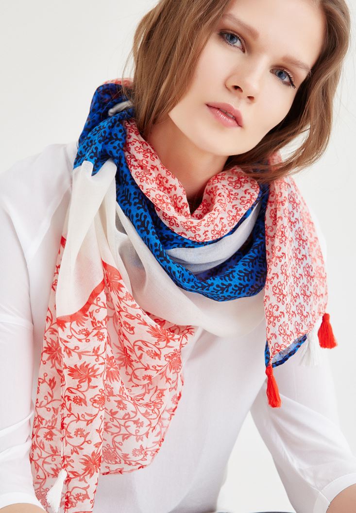 • Bayan Kırmızı Desenli Püsküllü Şal