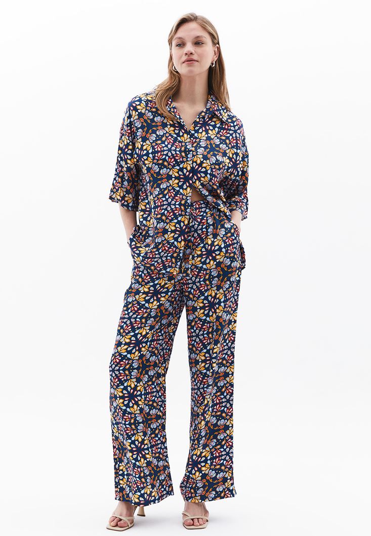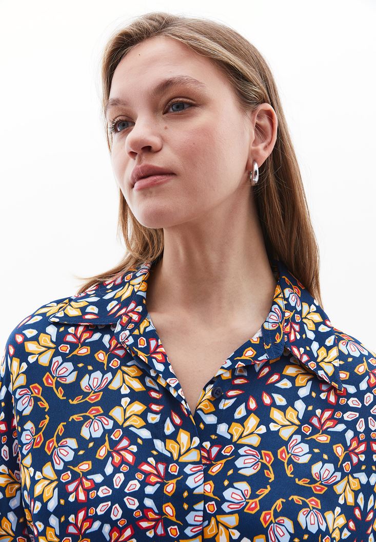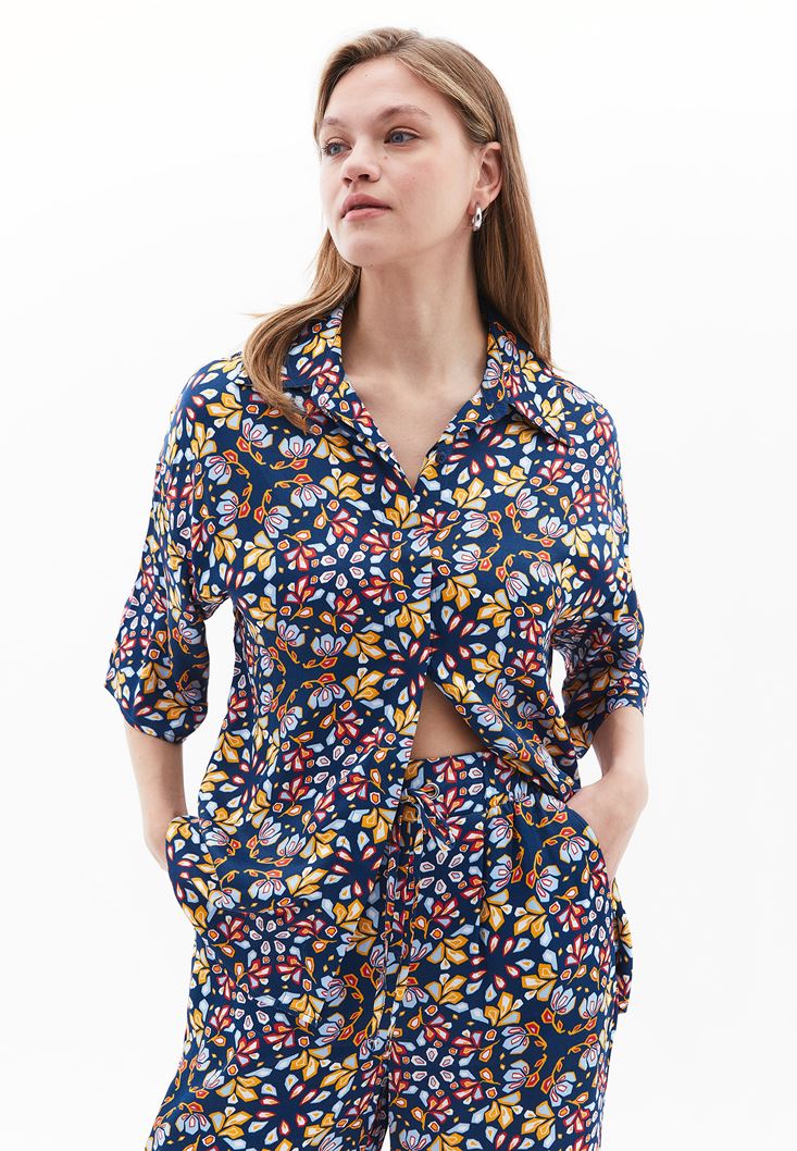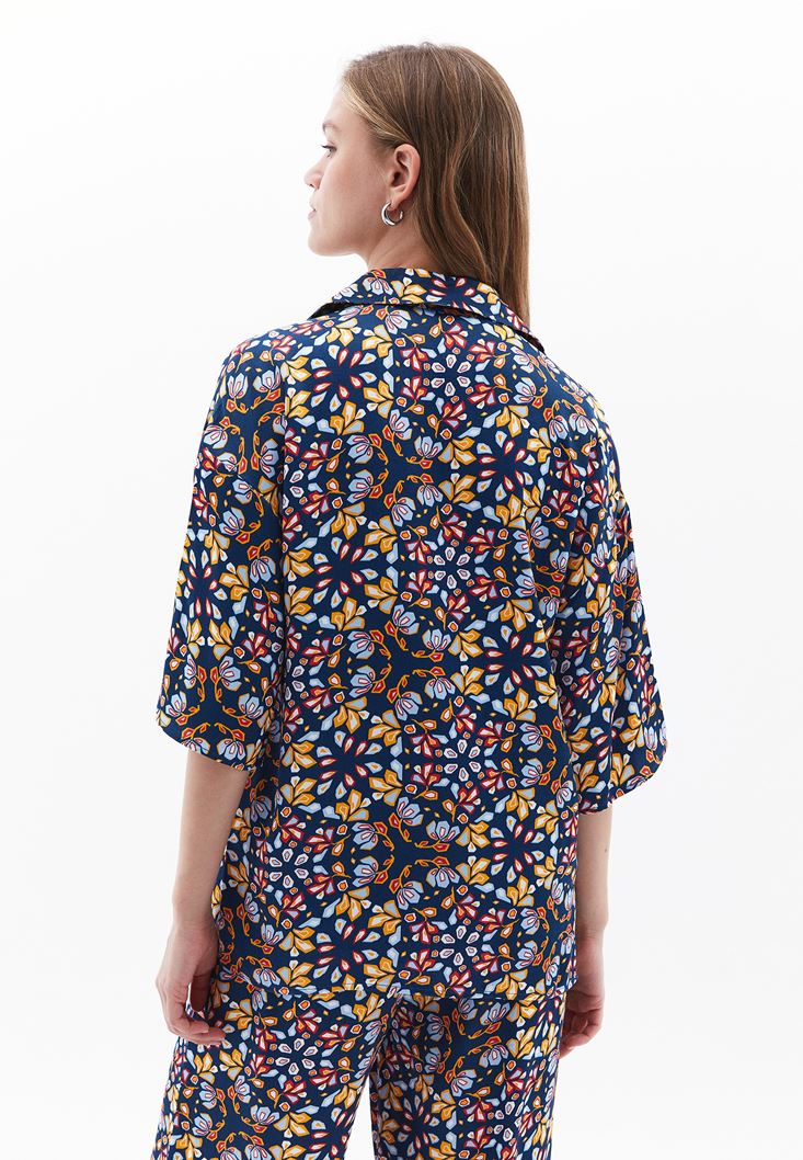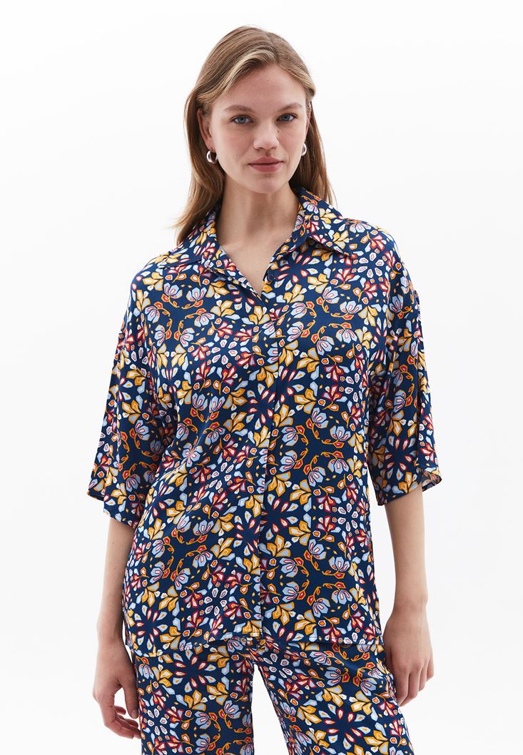 • Bayan Çok Renkli Desenli Saten Gömlek