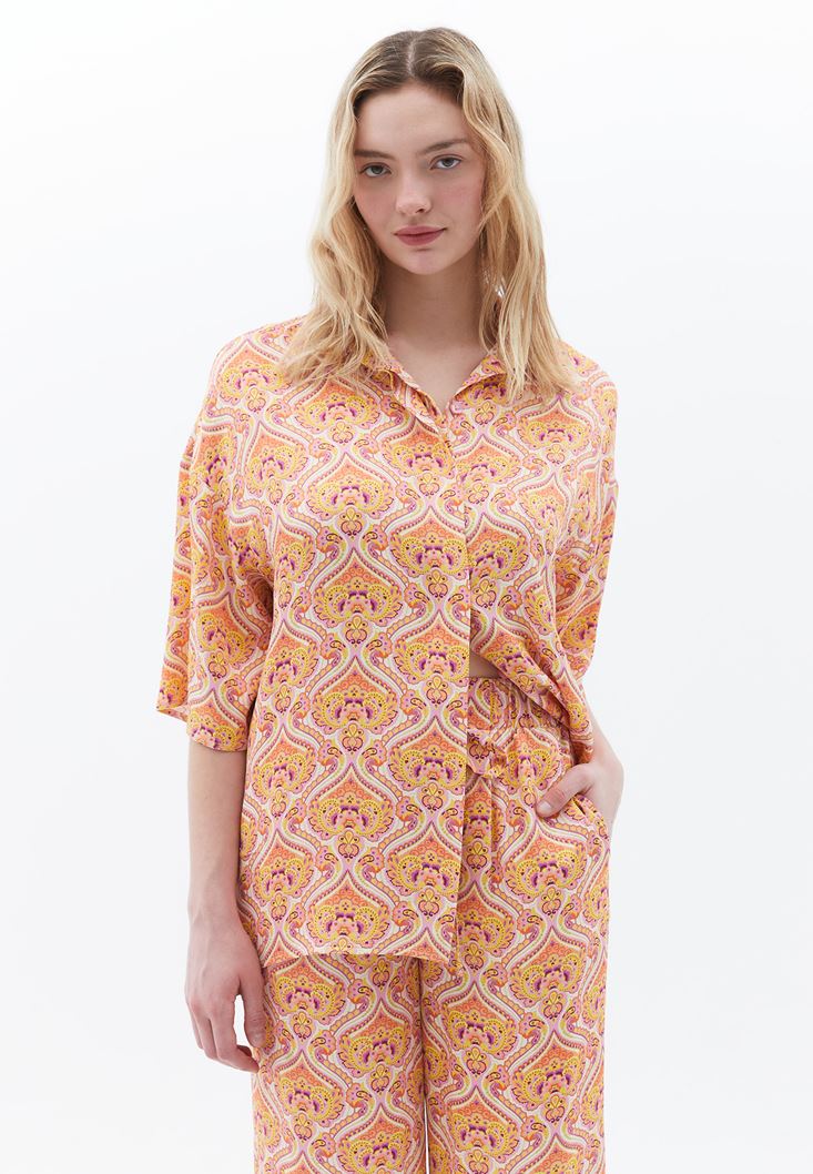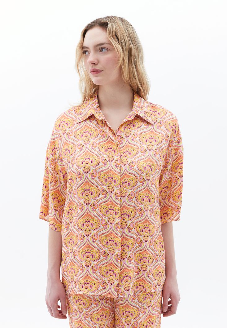 • Bayan Çok Renkli Desenli Saten Gömlek