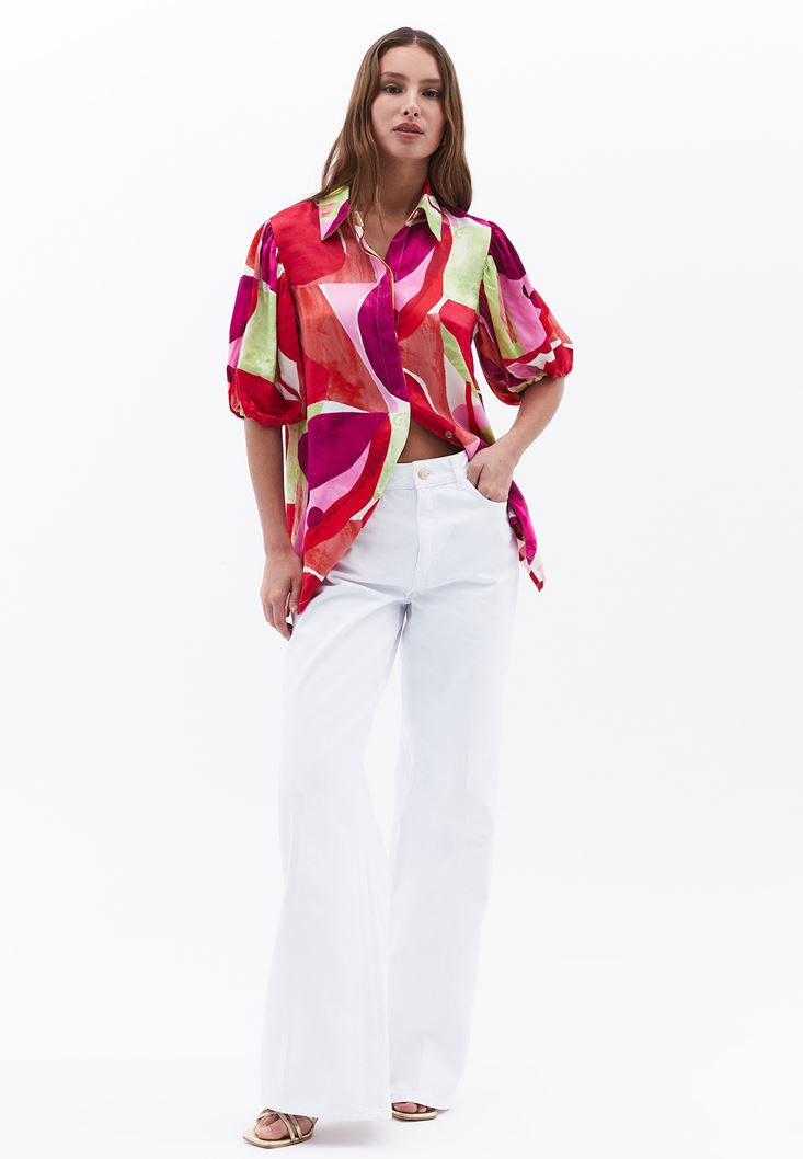 Canlı desenleri ve parlak dokusuyla dikkat çeken desenli saten gömlek, stilinize enerjik ve sofistike bir hava katıyor. Akışkan kumaşı sayesinde gün boyu konfor sunarken, dökümlü yapısıyla modern ve şık bir duruş sağlar. Düğmeli tasarımı sayesinde ister klasik şekilde kapalı kullanın, ister basic bir bralet üzerine açık bırakarak cool bir görünüm elde edin. Desenli gömlek modelini takım pantolonu ile tamamlayarak iddialı bir stil yaratabilir ya da sevdiğiniz diğer sade parçalarla dengeleyebilirsiniz.