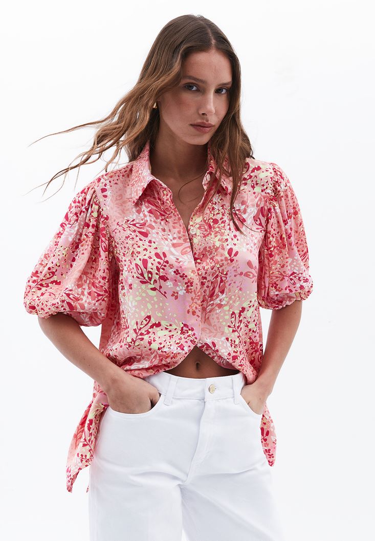 Canlı desenleri ve parlak dokusuyla dikkat çeken desenli saten gömlek, stilinize enerjik ve sofistike bir hava katıyor. Akışkan kumaşı sayesinde gün boyu konfor sunarken, dökümlü yapısıyla modern ve şık bir duruş sağlar. Düğmeli tasarımı sayesinde ister klasik şekilde kapalı kullanın, ister basic bir bralet üzerine açık bırakarak cool bir görünüm elde edin. Desenli gömlek modelini takım pantolonu ile tamamlayarak iddialı bir stil yaratabilir ya da sevdiğiniz diğer sade parçalarla dengeleyebilirsiniz.