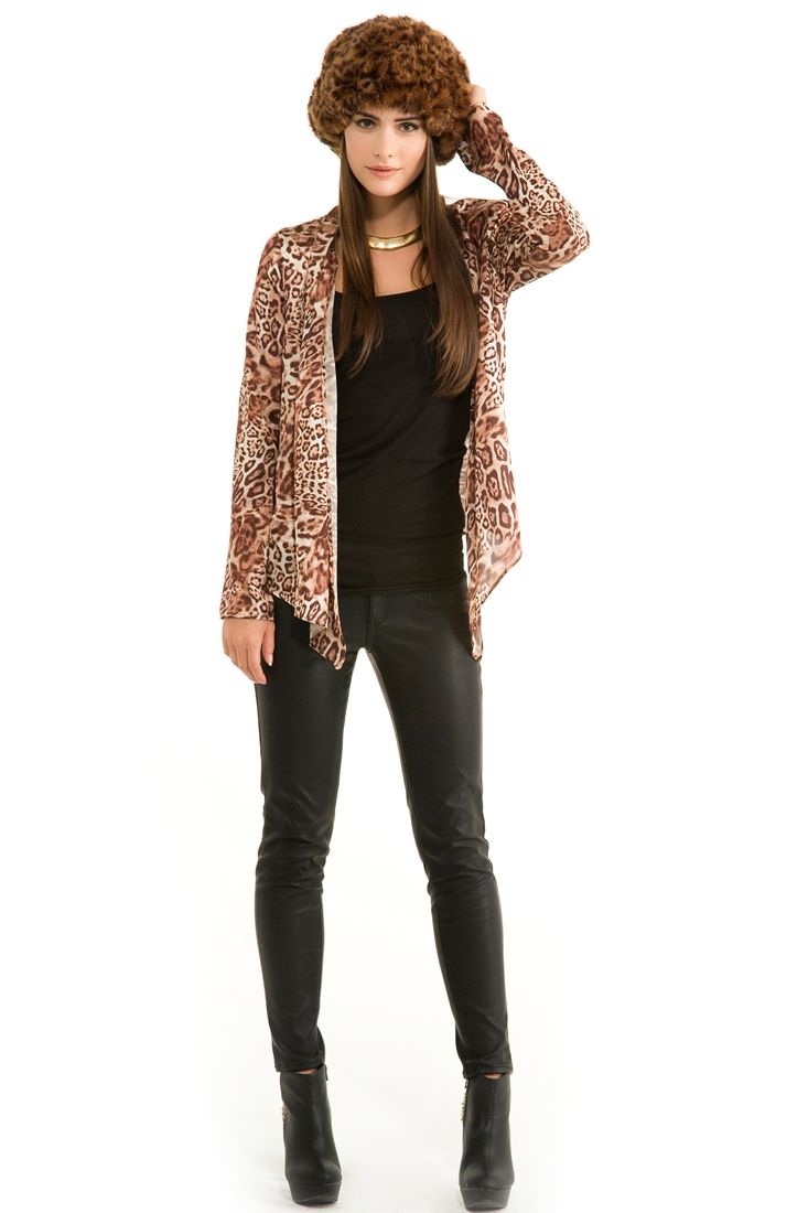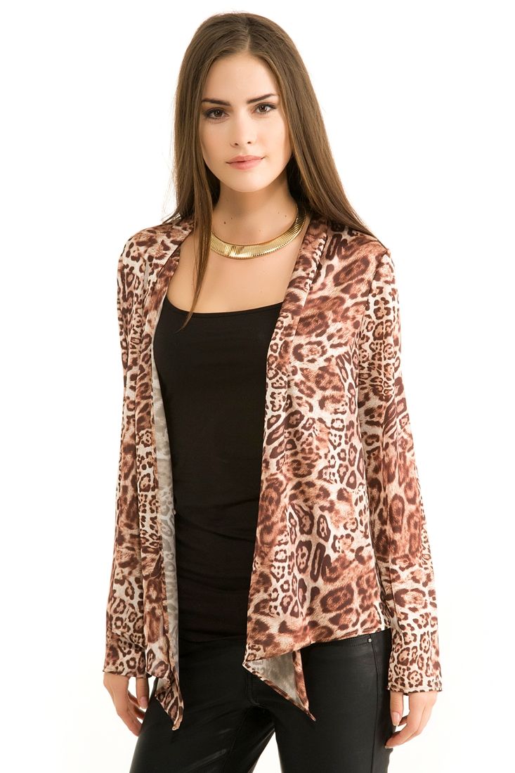 • Bayan Kahverengi Desenli Uzun  Ceket