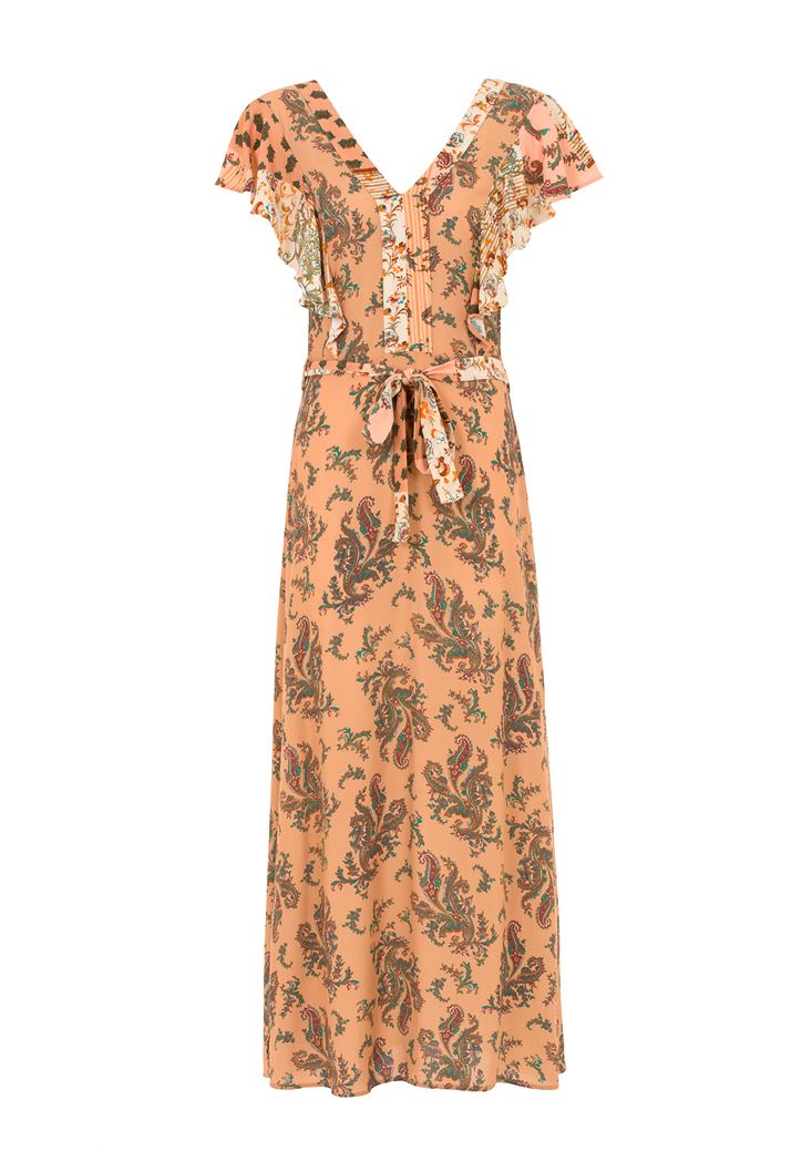 Çok Renkli Desenli Uzun Elbise