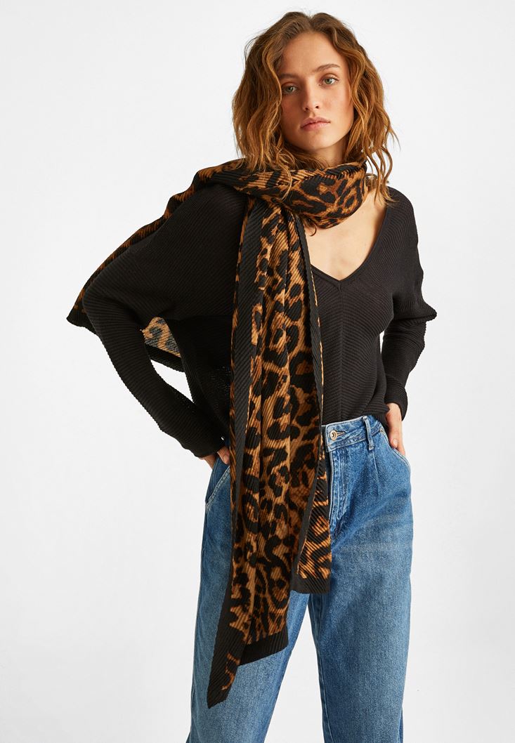 Desenli Uzun Şal modeli, yumuşacık dokusu ve pileli hafif kumaşı ile yeni sezonda en iyi şekilde sizlere sunuluyor. kadın şal modeli, leopar desenin çekici ve iddialı görünümü sayesinde aksesuar şıklığı yakalamanız için ideal seçeneklerden biri oluyor. Desenli şal modeli ile fark yaratan detaylar eşliğinde stilinizi arzu ettiğiniz gibi yansıtabilirsiniz. kadın şal modelini V yakalı kazaklar veya uzun ceketler üzerinde kullanarak ilgi çekici kombinler yapabilirsiniz. Desenli şal modeliyle oluşturacağınız hoş kombinleri sallantılı küpelerle rahatlıkla tamamlayabilirsiniz. Oxxo'nun sevilen desenlerle ve yumuşak dokularla sizlere sunduğu kadın şal modelleri ile tarzınızı dilediğiniz gibi şekillendirebilirsiniz.