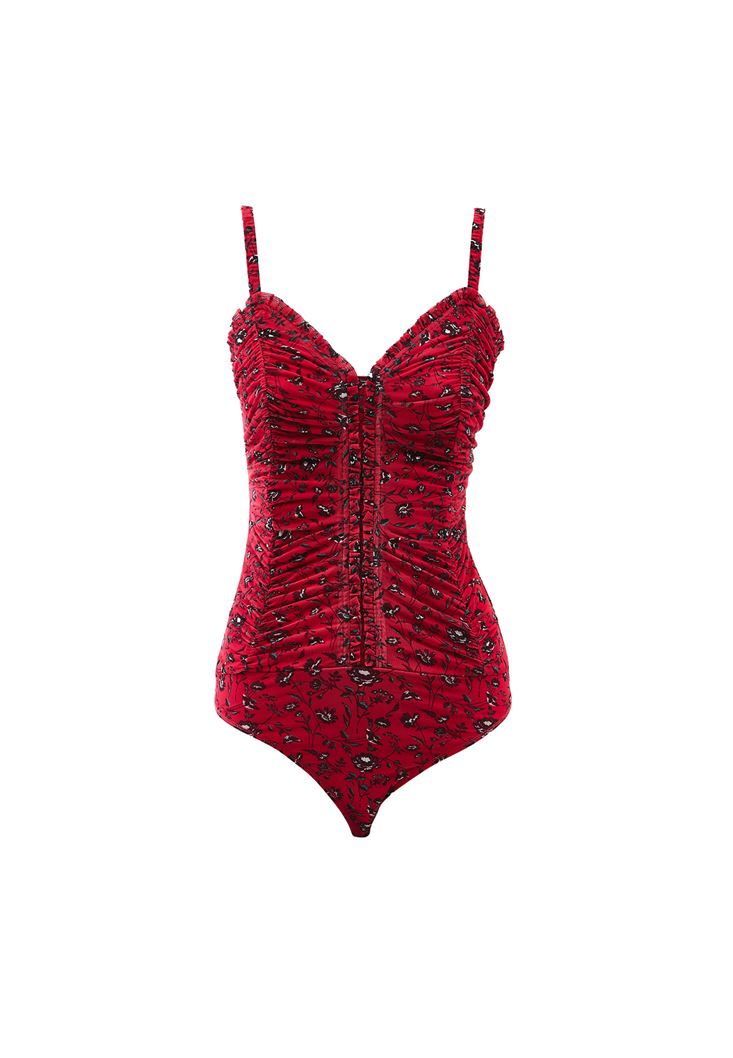 • Bayan Çok Renkli Desenli ve Büzgülü Bodysuit