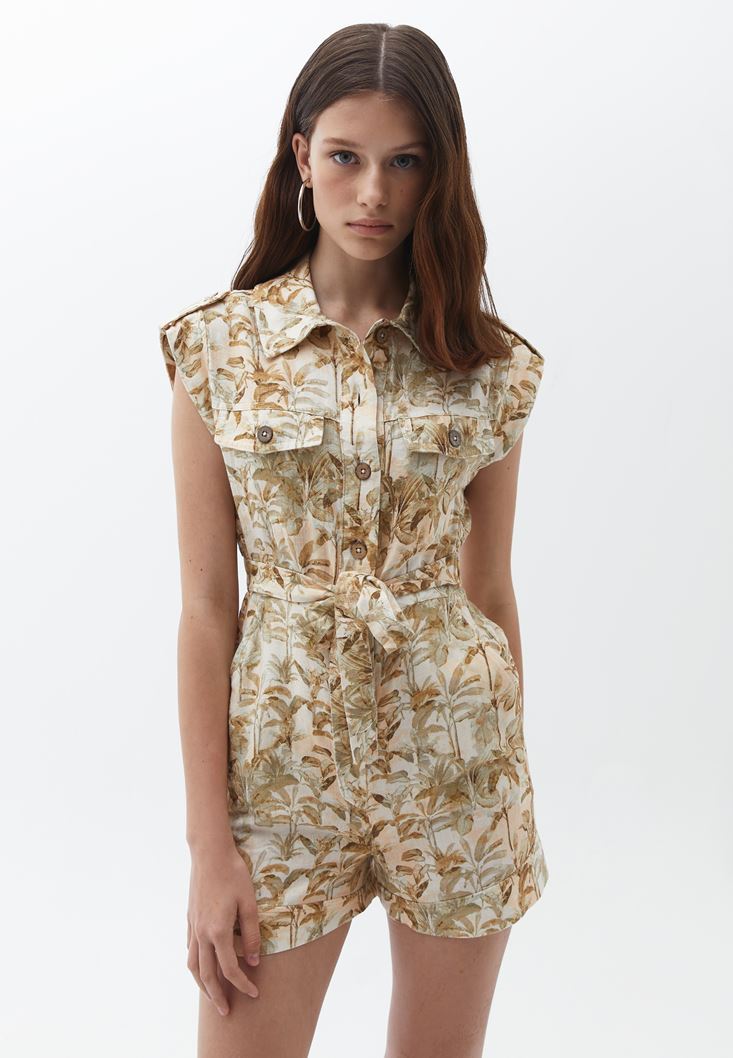 Oxxo Desenli ve Kuşaklı Şort Tulum 2123123190