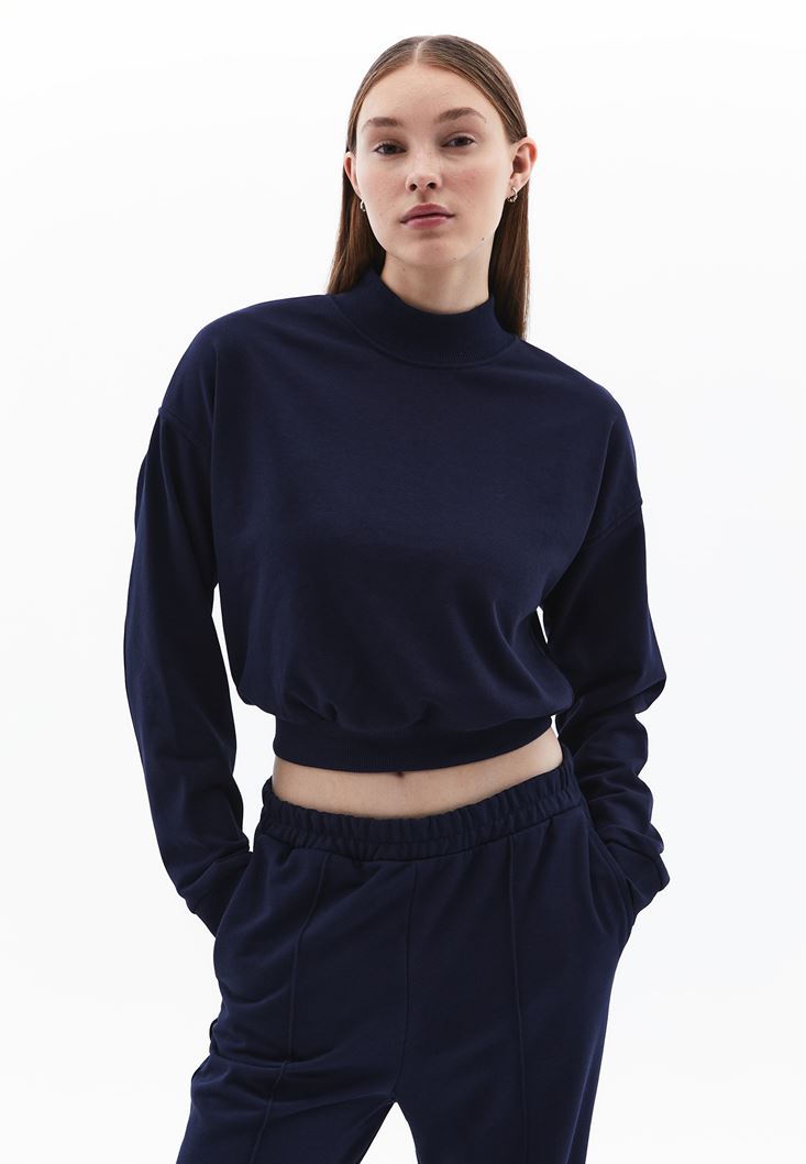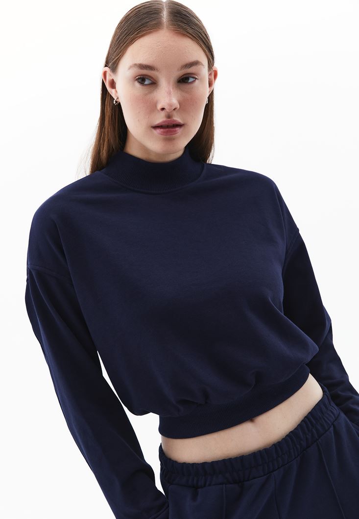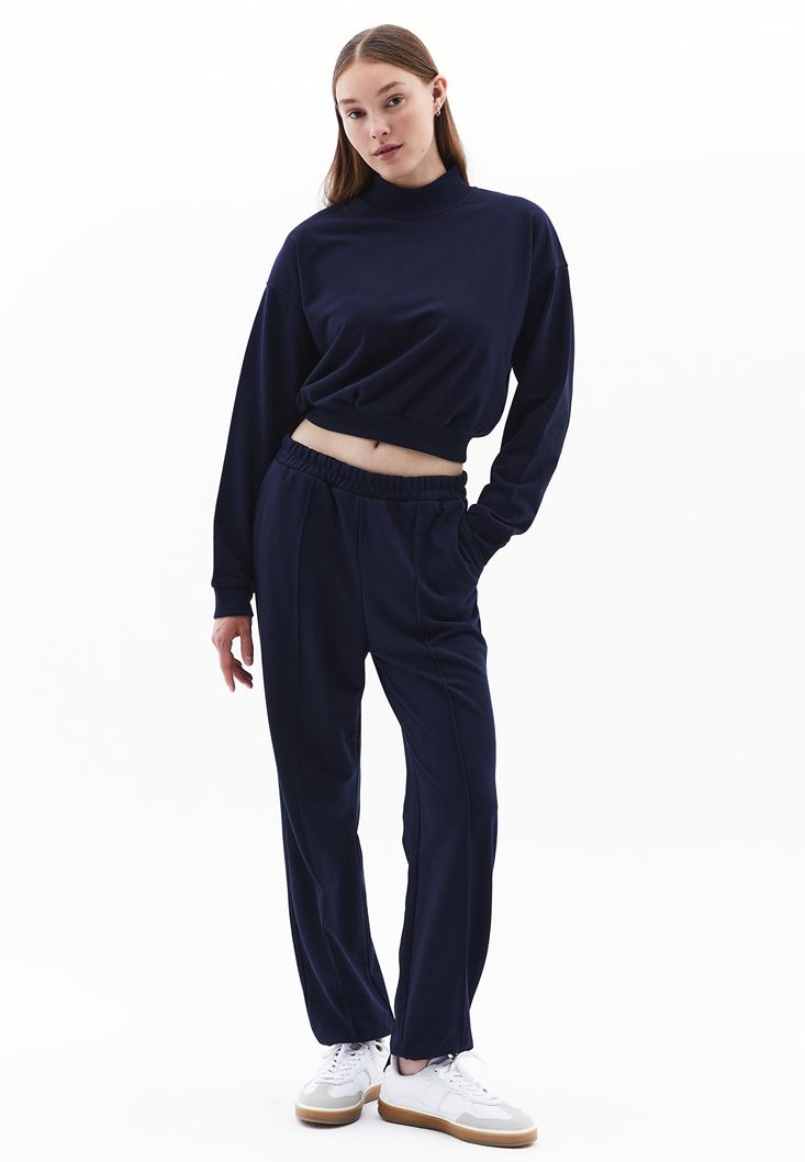 Dik Yaka Crop Sweatshirt ve Pantolon Kombini