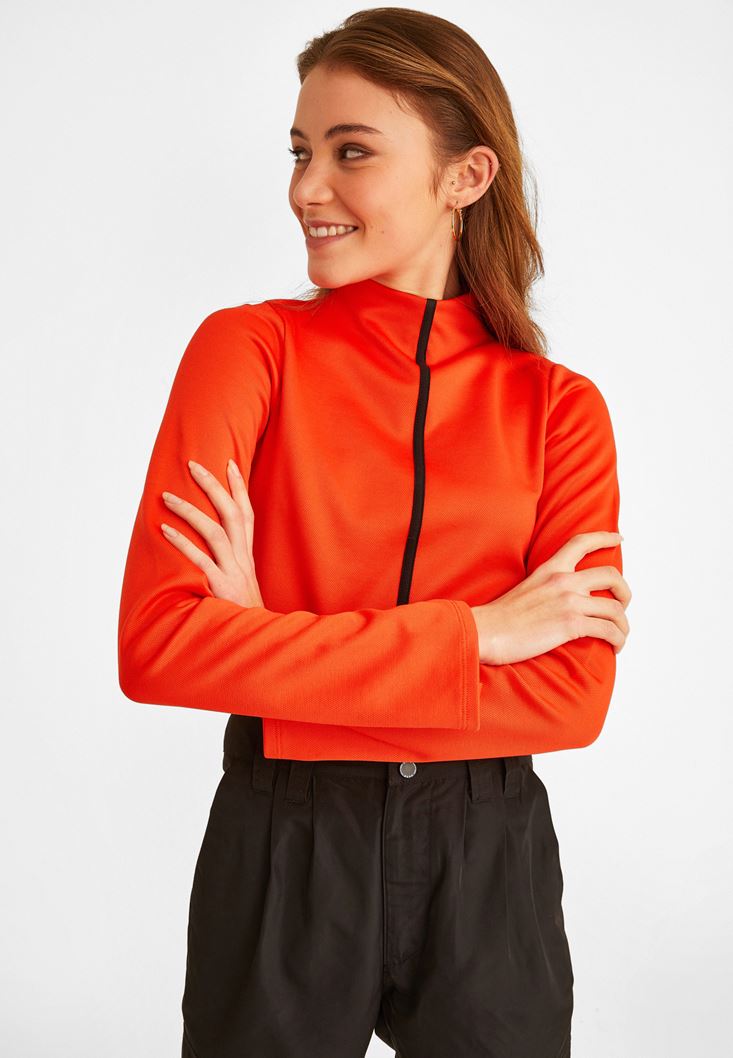 • Bayan Turuncu Dik Yaka Sweatshirt