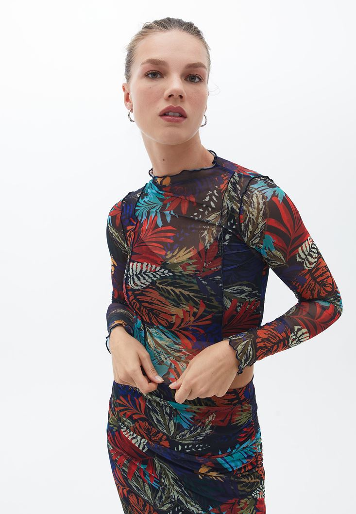 • Bayan Çok Renkli Dik Yaka Tül Bluz
