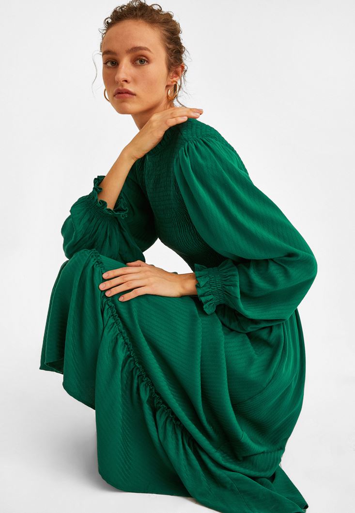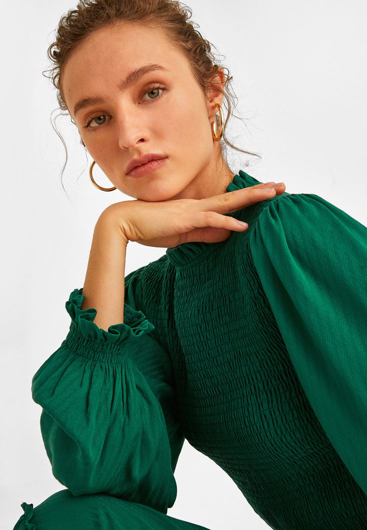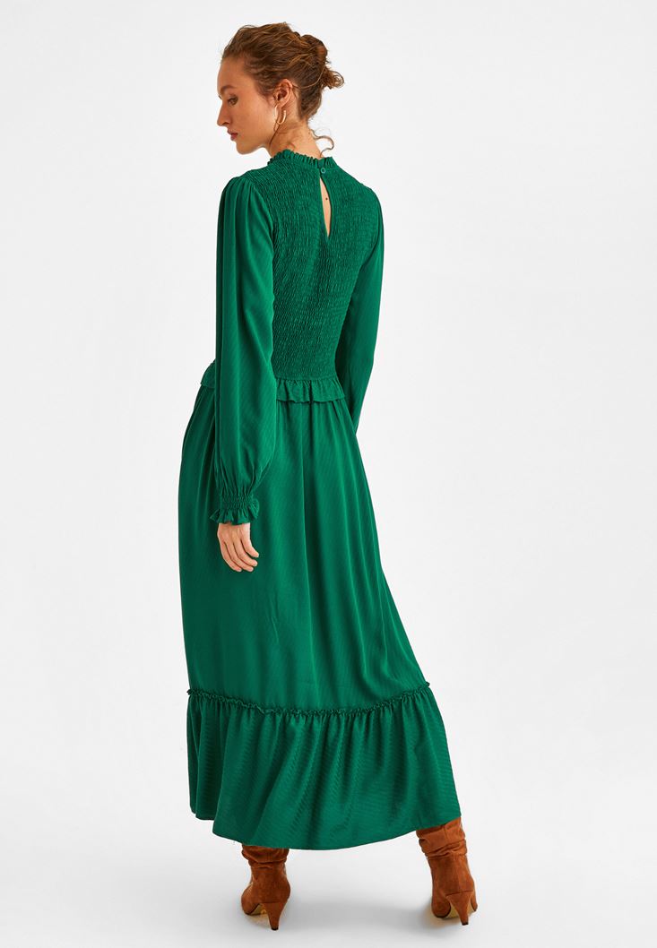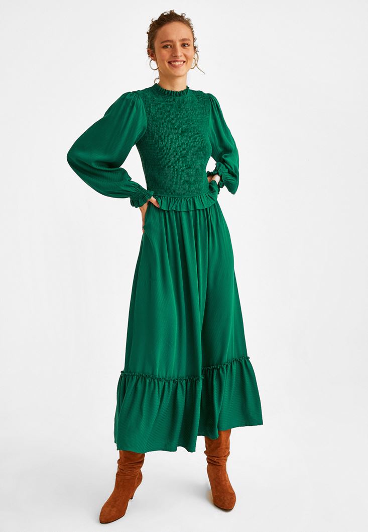 • Bayan Yeşil Dik Yaka Uzun Elbise
