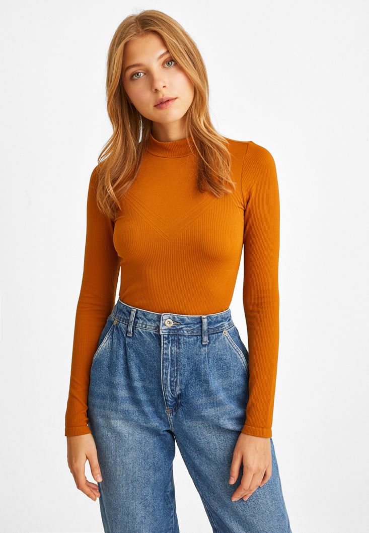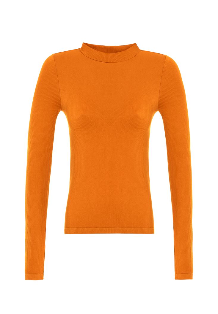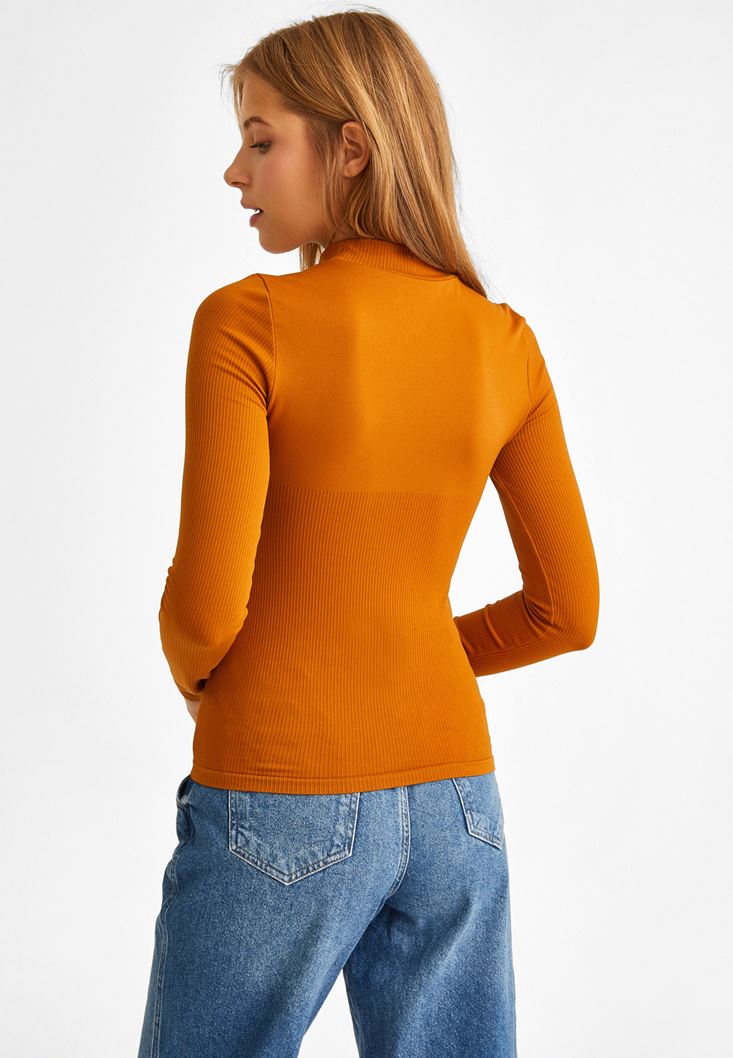 • Bayan Turuncu Dik Yaka Uzun Kollu Tişört