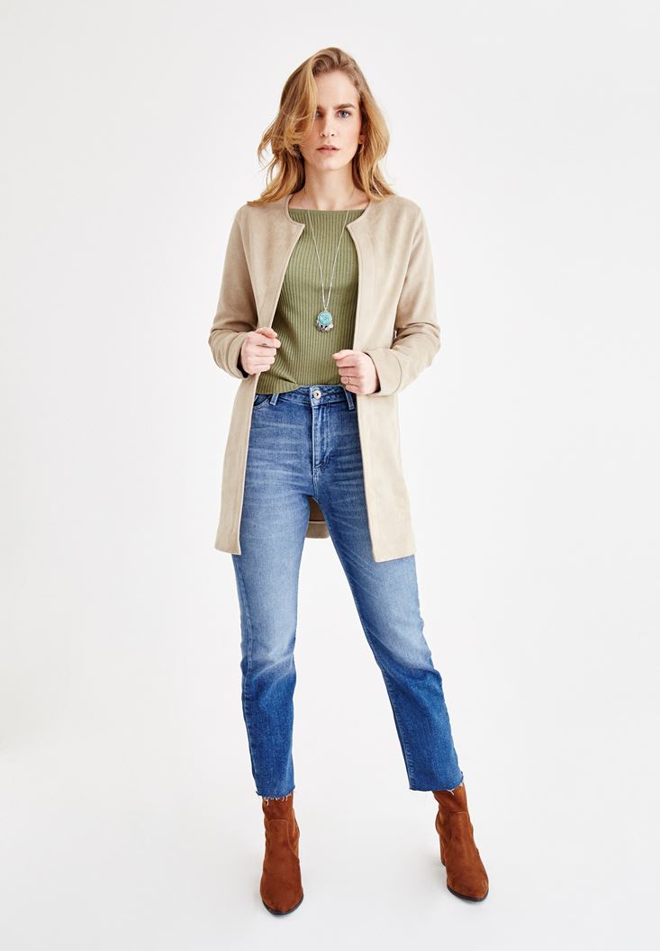 Klasik tasarim detaylarini modern durusu ile farkli bir tasarima dönüstüren dikis detayli cepli ceket modeli kombinlerinizi ön plana çikaracak ceketler arasinda yer aliyor. Spor, klasik ya da günlük kombinlerinizde rahatlikla tercih edebileceginiz ceket modeli sahip oldugu bebe yaka detayi ile oldukça hos bir görünüme sahip. Tasarim detayi olarak ön plana çikan yan cepleri ceket üzerinde yer alan dikis ve biye detaylari ile oldukça uyumlu olmasiyla tasarimda bütünlük sagliyor. Süet görünümlü dokusu ile zarif ve romantik bir siklik elde etmenize yardimci olan dikis detayli cepli ceket tasarimi detaylari ve dokusu ile konforlu bir kullanim sunuyor. OXXO'nun ilhamini modern kadinlardan alarak hazirladigi koleksiyonlarinda yer alan ceket modelini her zaman severek kullanacaksiniz.
