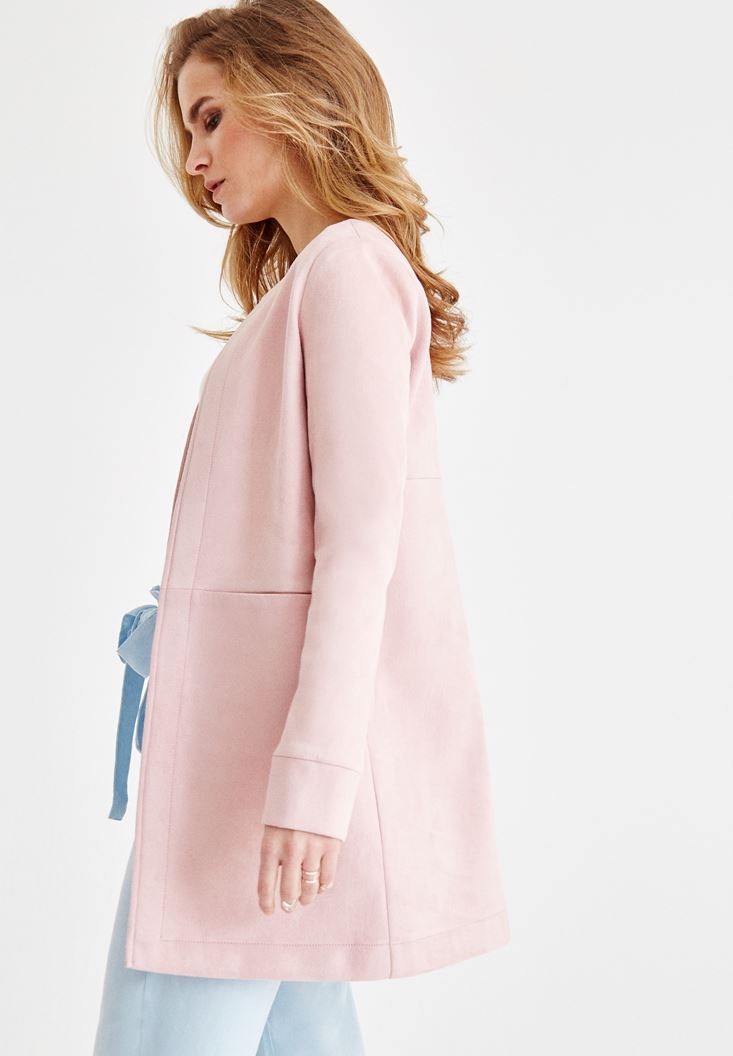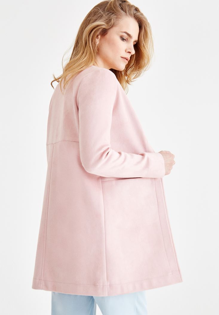 Pembe Dikiş Detaylı Cepli Ceket