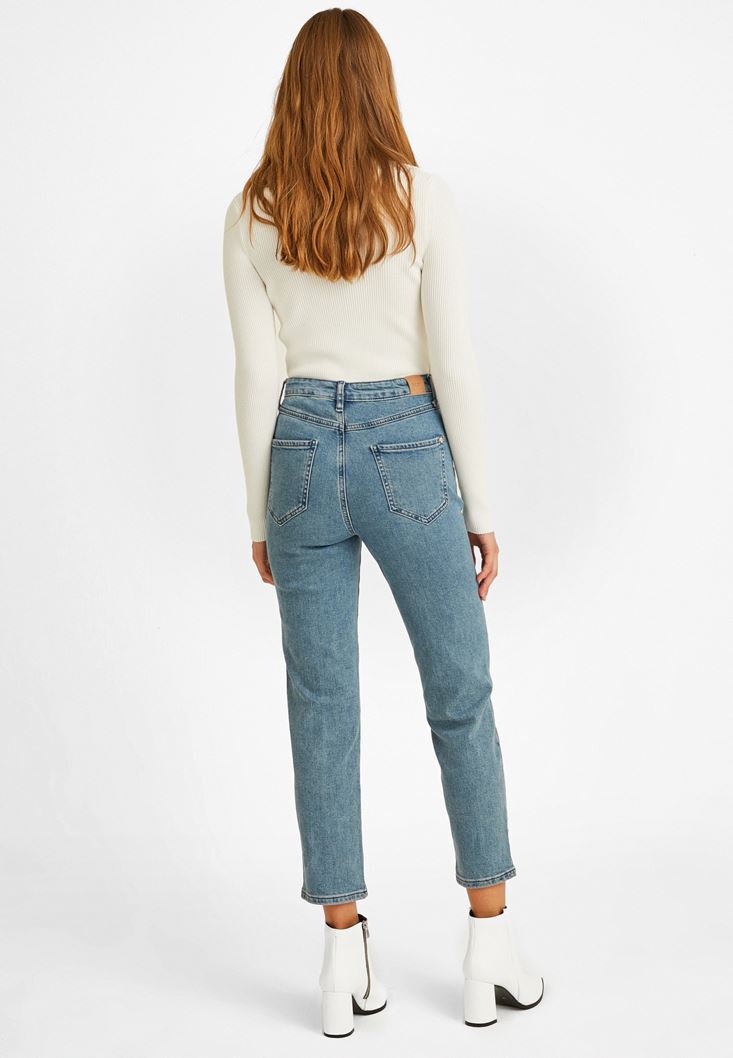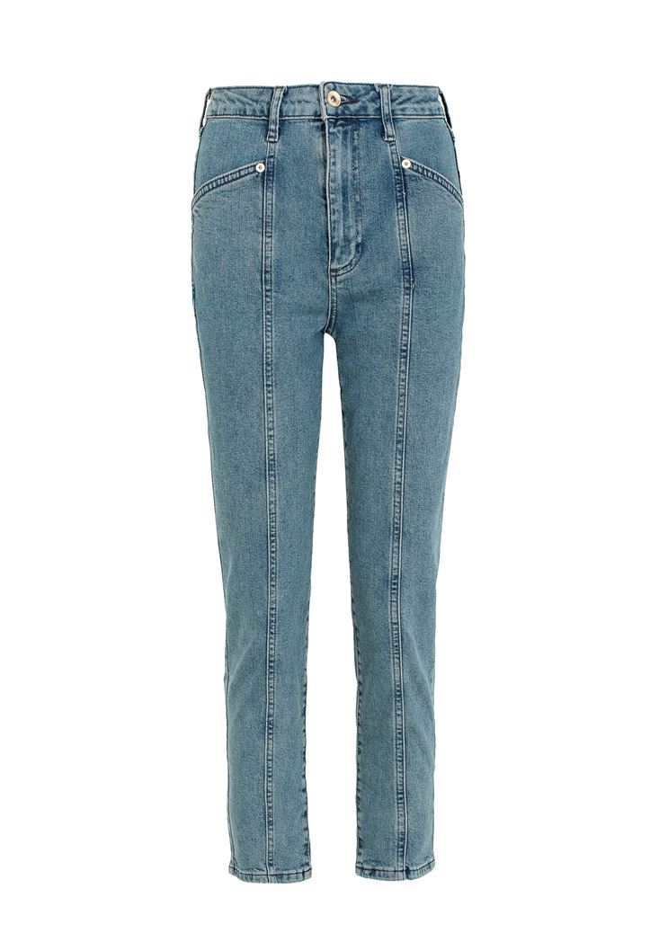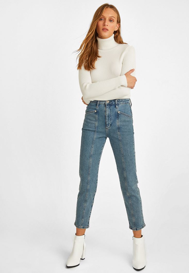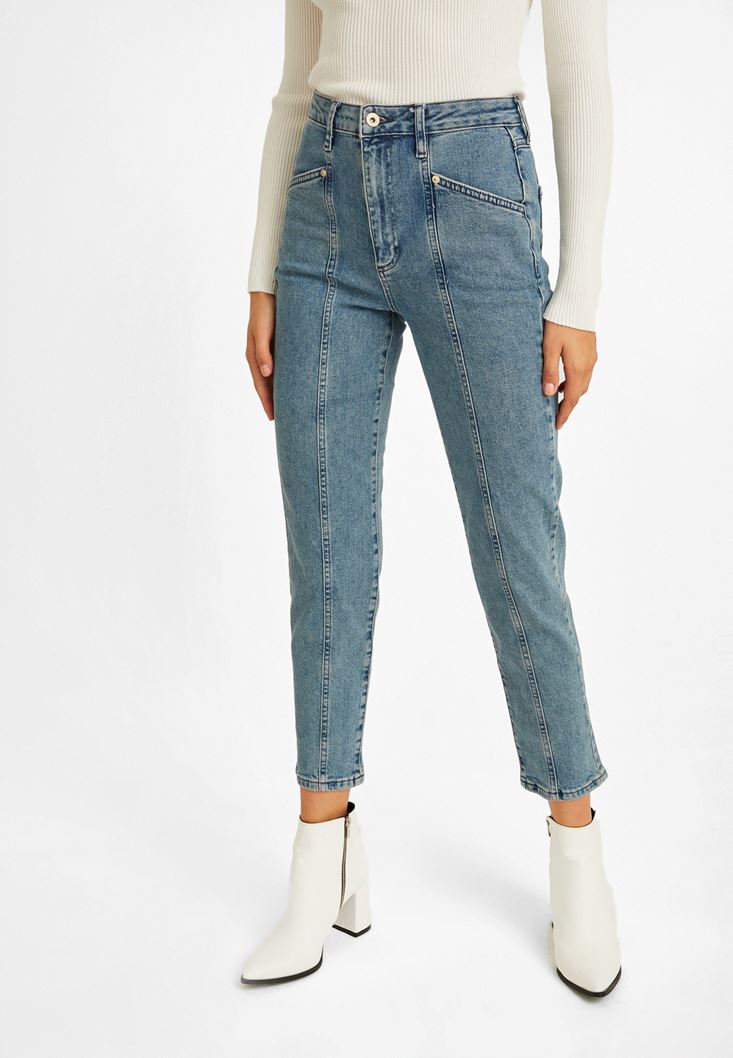 Mavi Dikiş Detaylı Mom Jean Pantolon