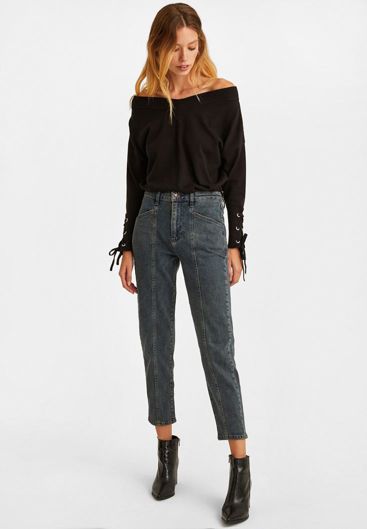 Dikiş Detaylı Yüksek Bel Mom Jean modeli, geçmişten günümüze kadar uzanan yolculuğa sahip olan mom pantolon kalıbı ile Oxxo’da sizlere sunuluyor. Yüksek bel kadın mom jean modeli; yumuşacık pamuklu dokusu, ön kısmında bacak boyunu takip eden zarif dikişi ve cep detayı ile oldukça zarif ve hoş bir görünüm sergiliyor. kadın kazak modelleri ve kadın sneaker ayakkabı modelleri ile kombinleyebileceğiniz kadın mom jean pantolon modeli sayesinde, sokak modasına özgün tarzınızla dahil olabilirsiniz. kadın pantolon modeli ile kullanacağınız Oxxo kemer modelleri, kombininizin vurgulayıcı aksesuar parçaları arasında yer alıyor. kadın boyfriend ceket modelleri ile son derece havalı kombinler yapabilmek için kadın mom jean modelleri tercih etmek sizlere kolaylık sağlıyor. Oxxo’nun fark yaratan kadın pantolon modelleri ile şıklığı yakalamanız an meselesi!