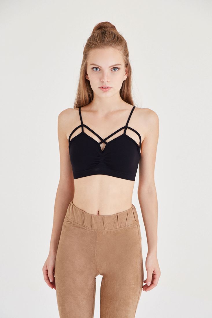 Siyah Dikişsiz Çapraz Detaylı Büstiyer