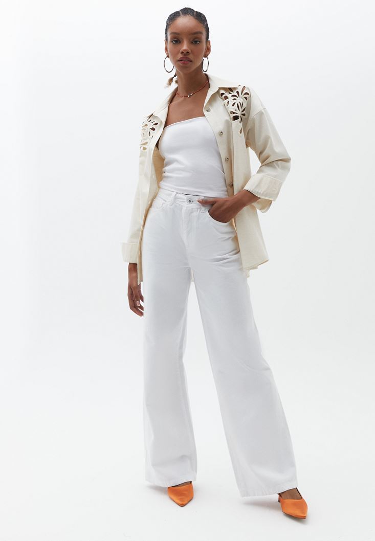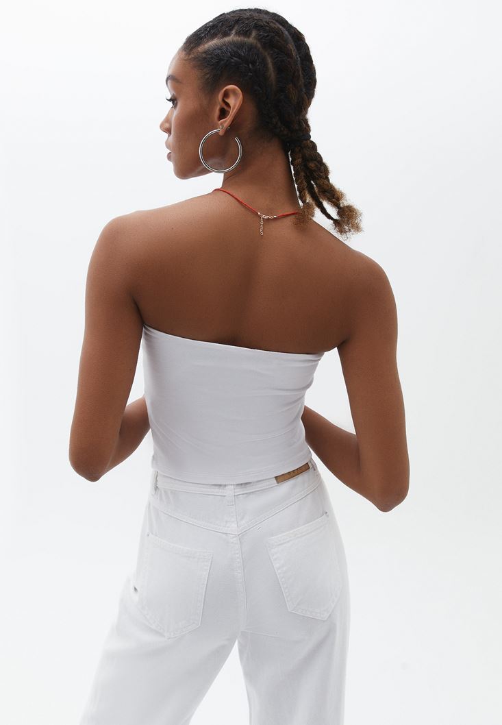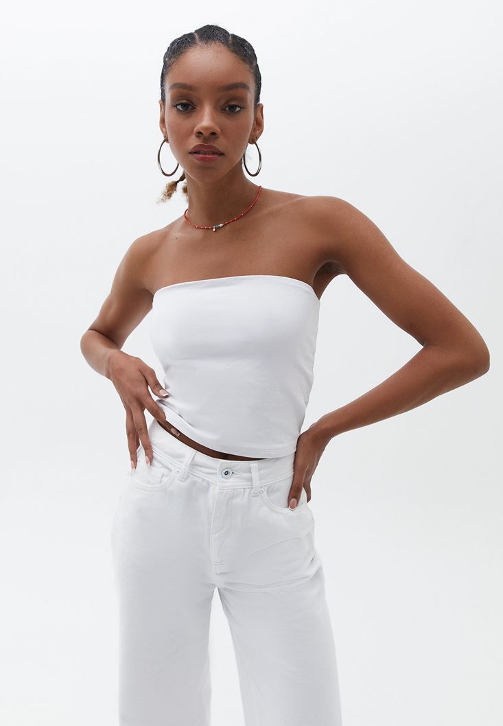 Straplez Crop Top ve Wide-Leg Pantolon Kombini