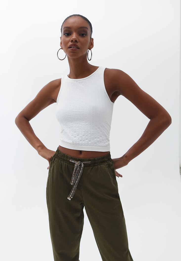 Dikişsiz Crop Atlet ve Yumuşak Dokulu Pantolon Kombini