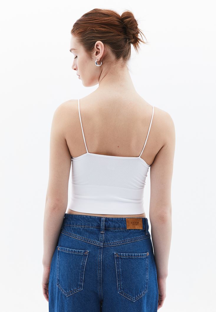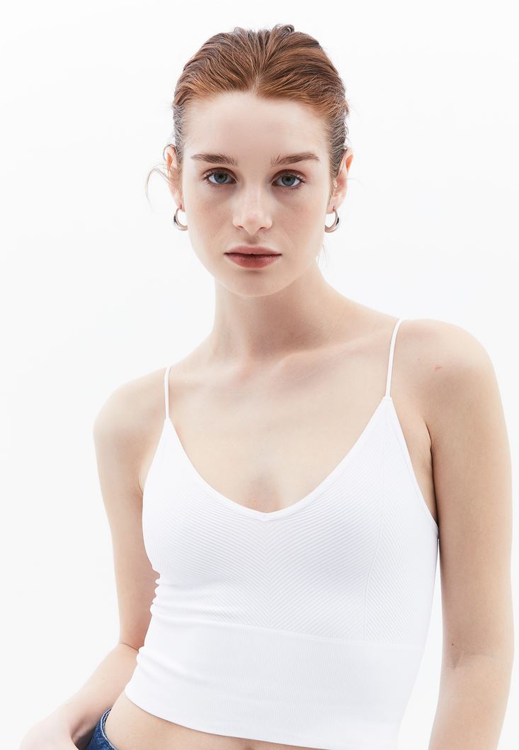 Beyaz Dikişsiz Crop Atlet