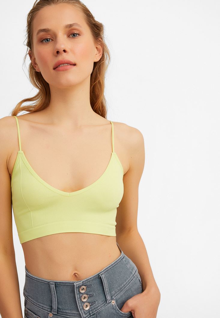 • Bayan Sarı Dikişsiz Crop Büstiyer