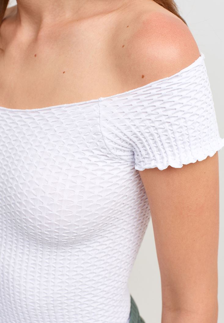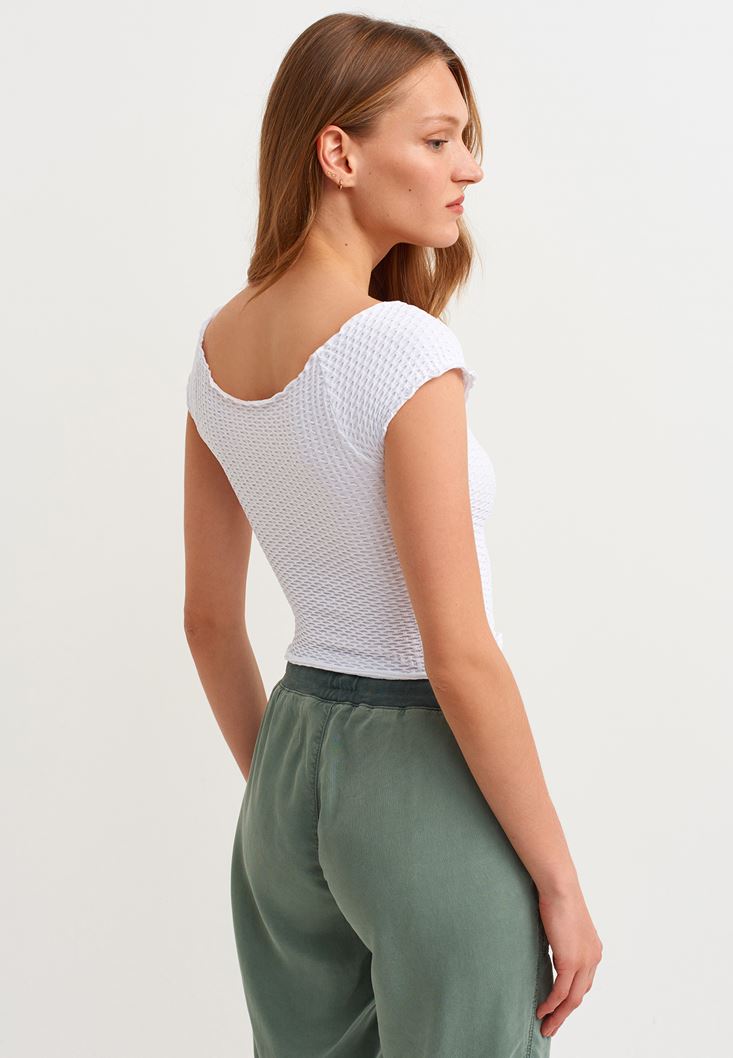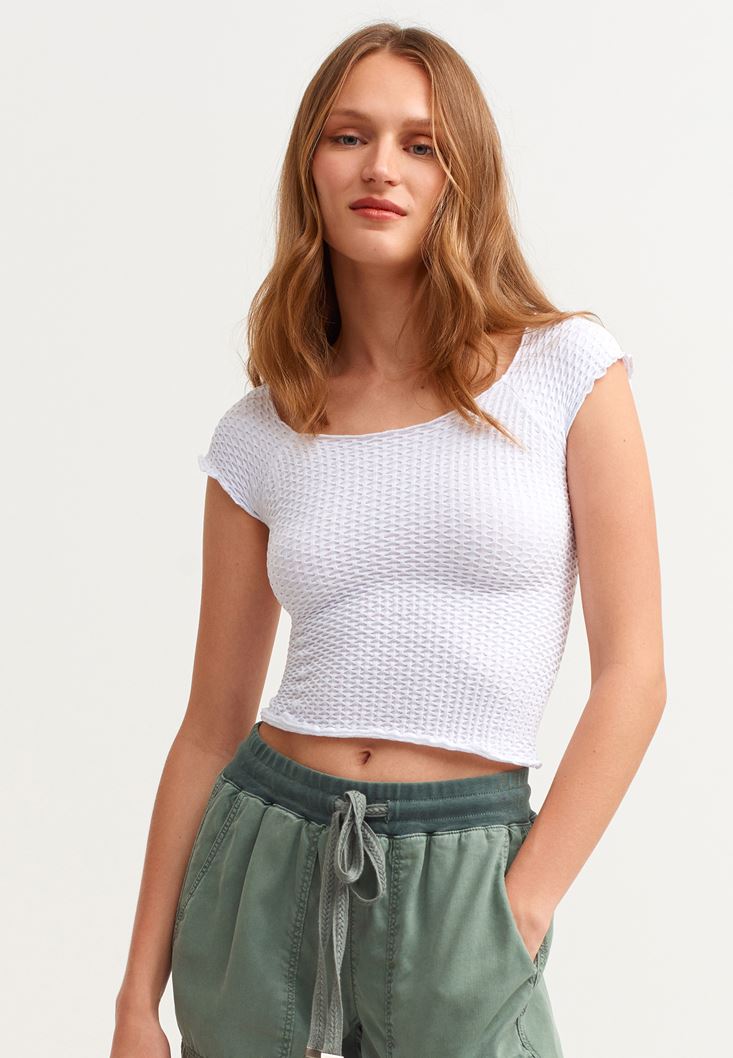 Beyaz Dikişsiz Crop Tişört