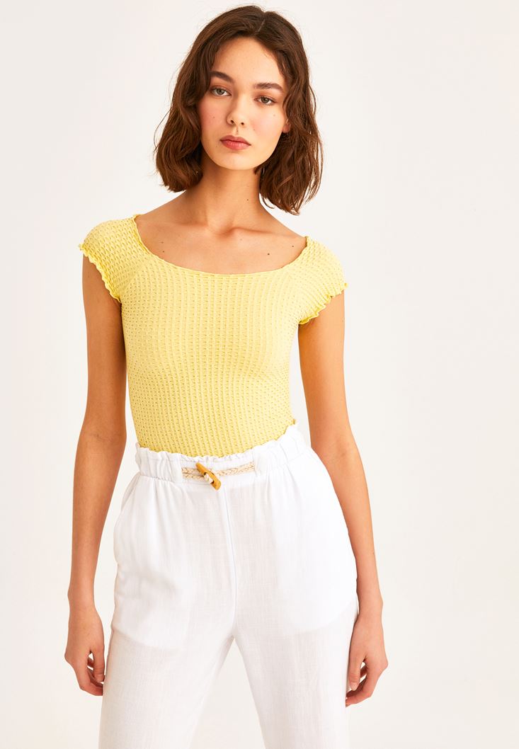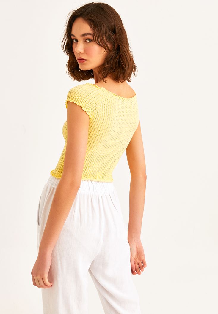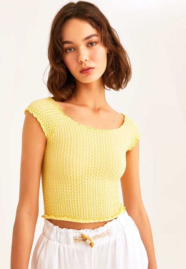 Sarı Dikişsiz Crop Tişört