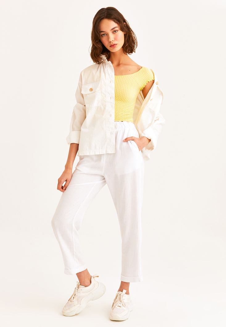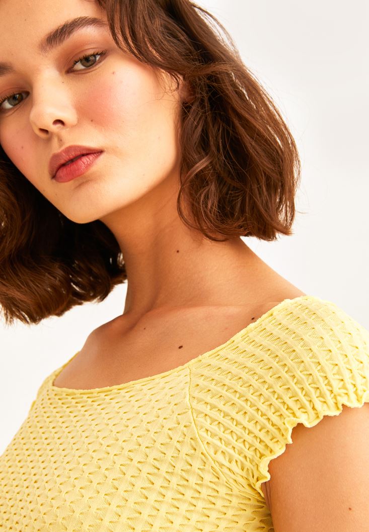 • Bayan Sarı Dikişsiz Crop Tişört