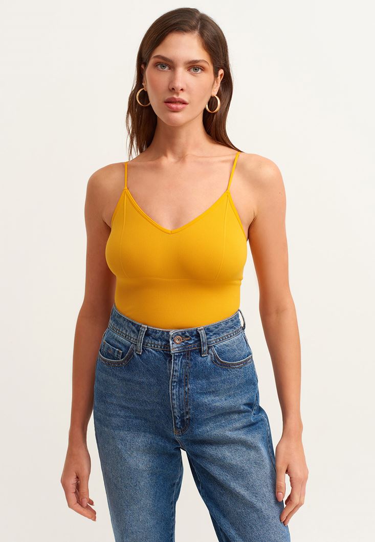 Sarı Dikişsiz Crop Top