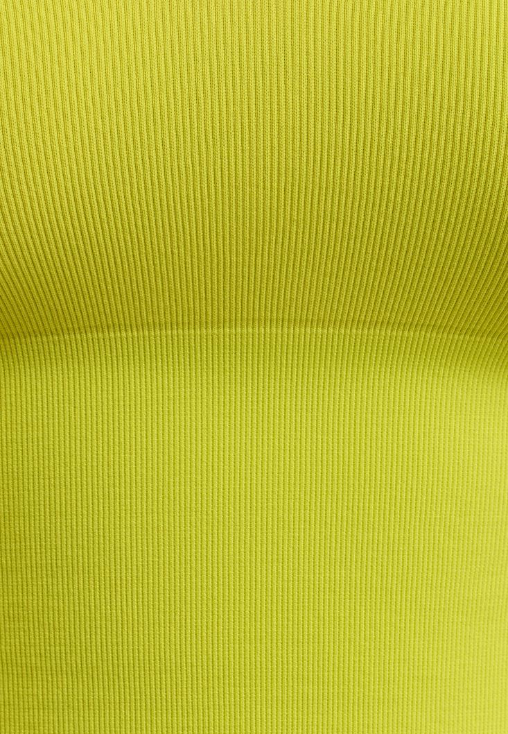 Seamless teknolojisi ile tasarlanan dikişsiz ve esnek doku, V yaka form, bedeni saran esnek kalıp, crop kesim.