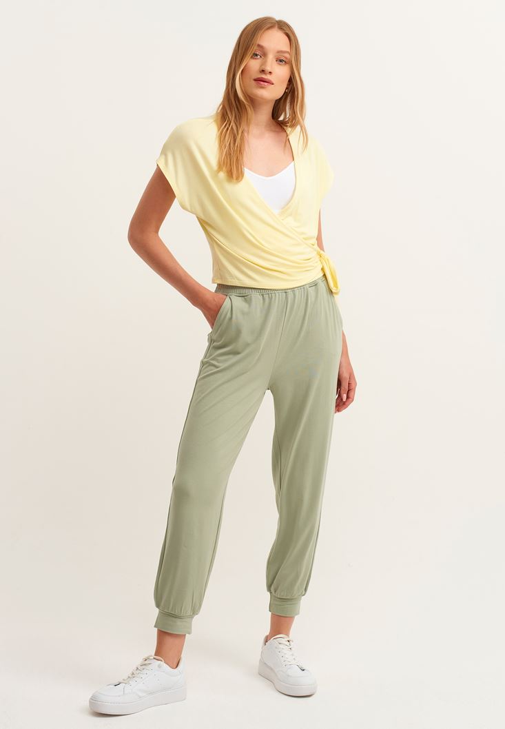 Kruvaze Bluz ve Jogger Pantolon Kombini