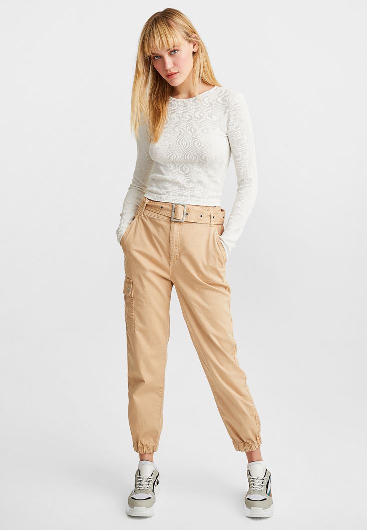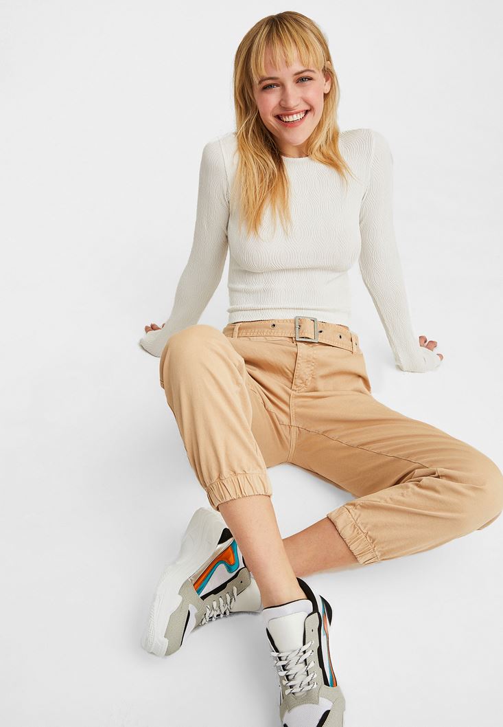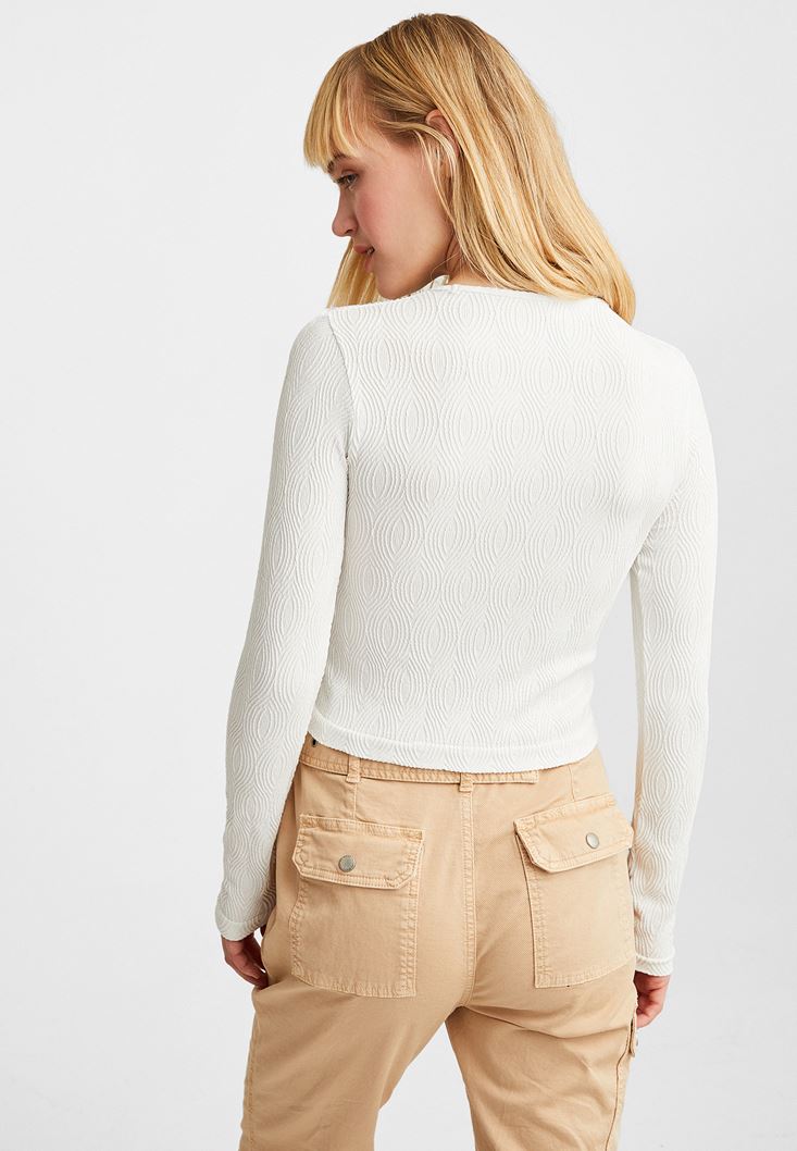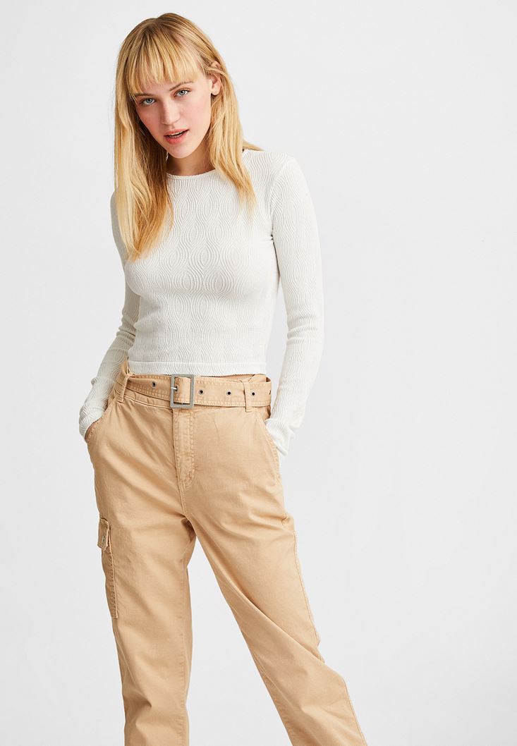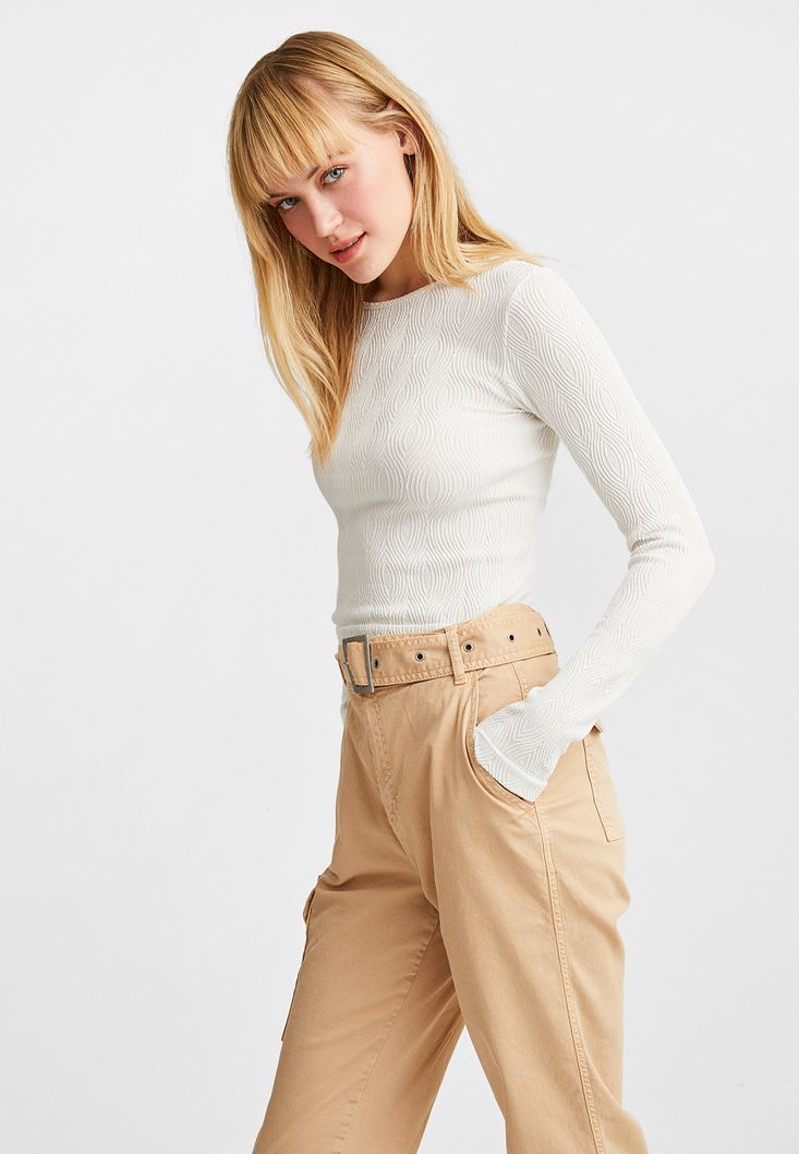 Krem Dikişsiz Dokulu Bluz