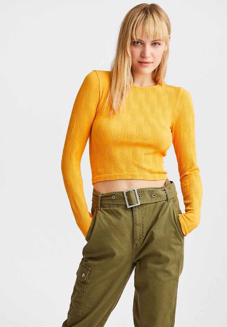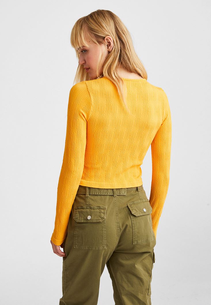 • Bayan Sarı Dikişsiz Dokulu Bluz