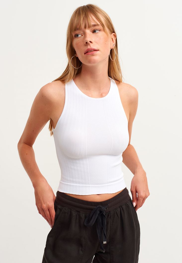 Beyaz Dikişsiz Halter Yaka Tank Top