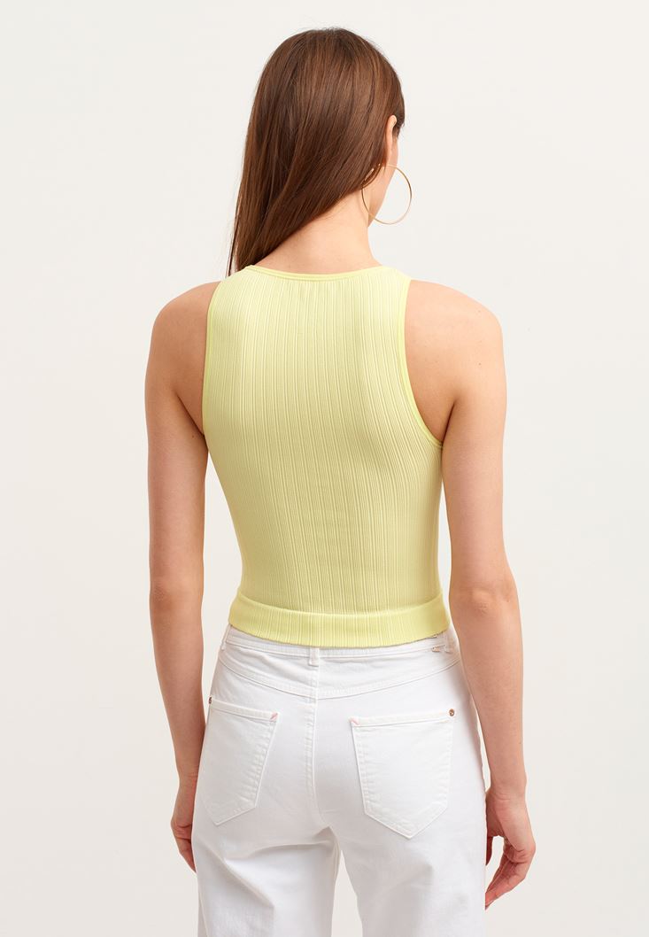 • Bayan Sarı Dikişsiz Halter Yaka Tank Top