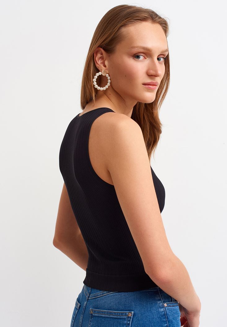 • Bayan Siyah Dikişsiz Halter Yaka Tank Top