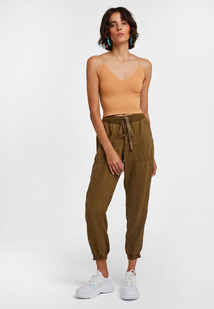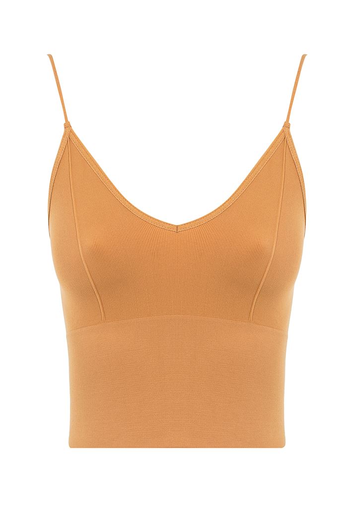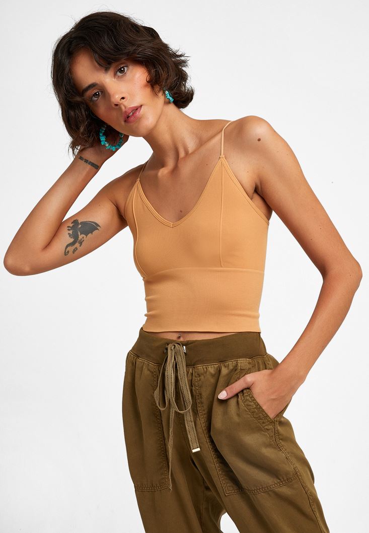 • Bayan Bej Dikişsiz İnce Askılı Crop Top