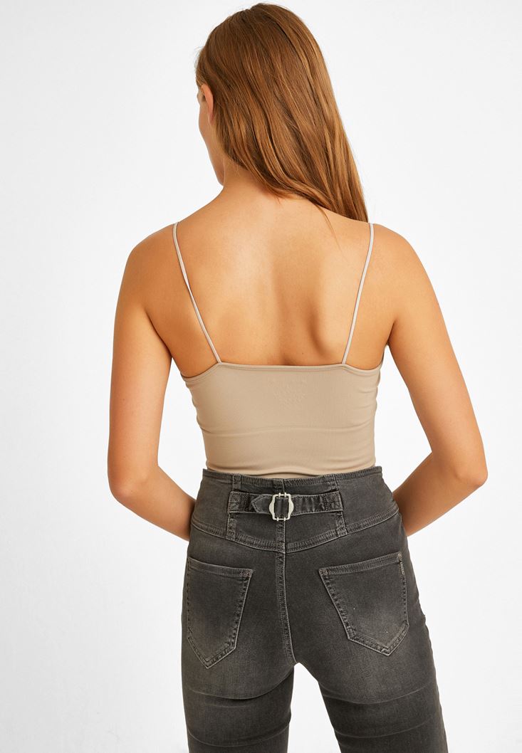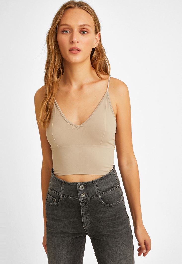 • Bayan Bej Dikişsiz İnce Askılı Crop Top