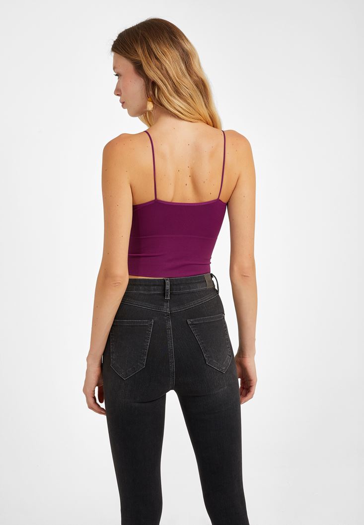 • Bayan Mor Dikişsiz İnce Askılı Crop Top