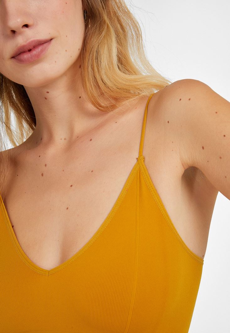 • Bayan Sarı Dikişsiz İnce Askılı Crop Top