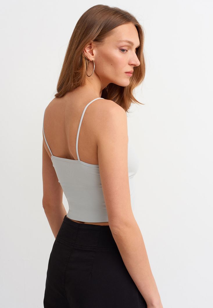 • Bayan Gri Dikişsiz İnce Askılı Crop Top