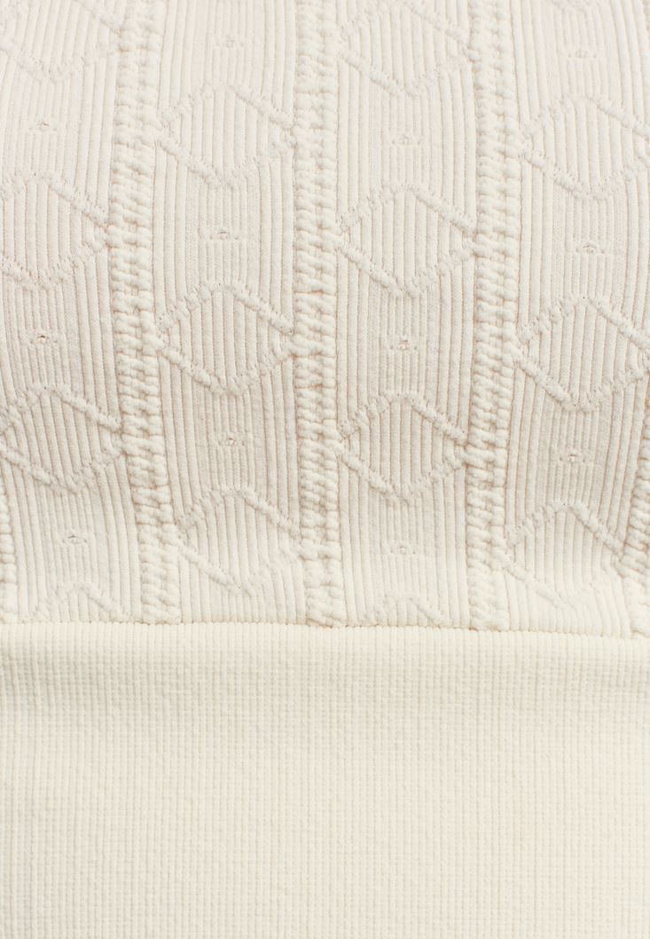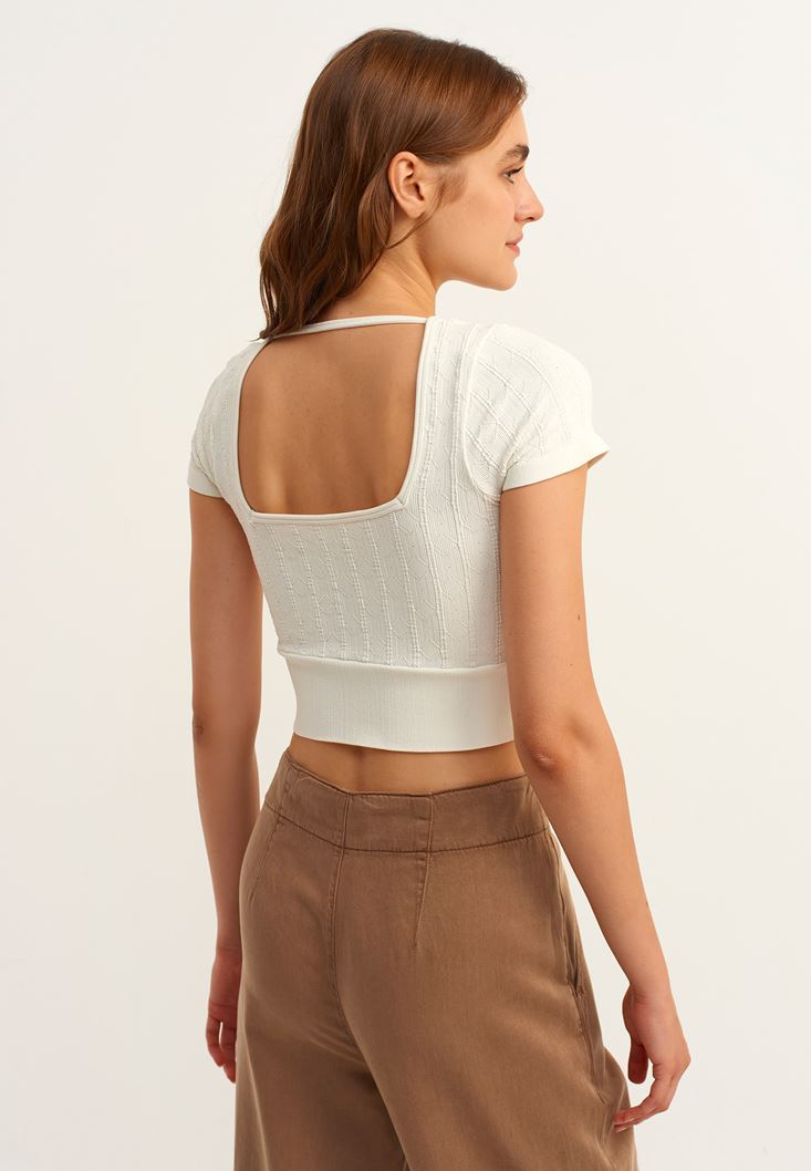 Krem Dikişsiz Kare Yaka Jakar Detaylı Tişört