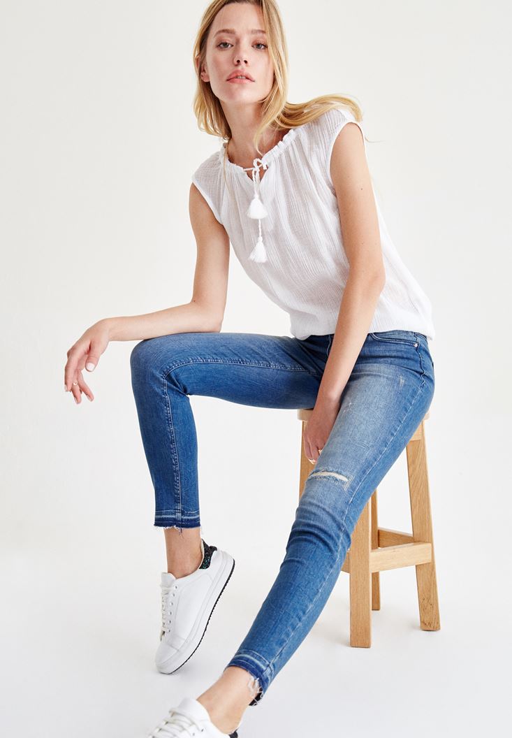 Jean pantolon modelleri günlük sikligin vazgeçilmez parçalari arasinda yer alirken OXXO'nun konforlu ve dikkat çekici tasarimlari dolabinizin bas kösesine geçecek. Dizi yirtik jean modeli tasarimi ve kesimi ile sade ama sik bir görünüm elde etmenizi saglayacak. Dar paça kesime sahip olan jean modeli farkli tarzlar denemeniz için imkan sunacak. Spor ve günlük sikligin önemli parçalari arasinda yer alan jean modelleri artik gece disari çikarken de kullanabileceginiz sikliklari ile dikkatinizi çekecek. Yirtik detaylari ile kendine has bir görünüme sahip olan jean modeli kesik paçasi ile salasligini tamamlarken farkli kombinler deneyebilirsiniz. Basic tisört modelleri ile günlük sikliginizi tamamlarken genis yaka kesimli bluz modelleri ve boyun aksesuarlar ile daha dikkat çekici bir görünüm elde edebilirsiniz.