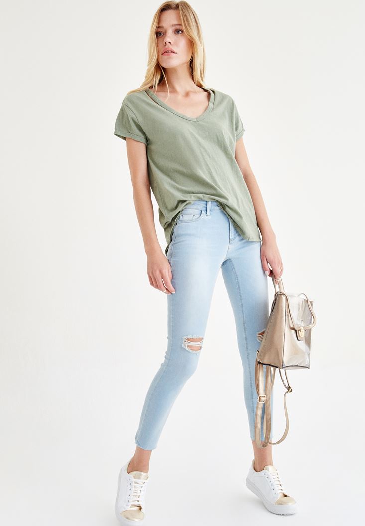 Jean pantolon modelleri günlük sikligin vazgeçilmez parçalari arasinda yer alirken OXXO'nun konforlu ve dikkat çekici tasarimlari dolabinizin bas kösesine geçecek. Dizi yirtik jean modeli tasarimi ve kesimi ile sade ama sik bir görünüm elde etmenizi saglayacak. Dar paça kesime sahip olan jean modeli farkli tarzlar denemeniz için imkan sunacak. Spor ve günlük sikligin önemli parçalari arasinda yer alan jean modelleri artik gece disari çikarken de kullanabileceginiz sikliklari ile dikkatinizi çekecek. Yirtik detaylari ile kendine has bir görünüme sahip olan jean modeli kesik paçasi ile salasligini tamamlarken farkli kombinler deneyebilirsiniz. Basic tisört modelleri ile günlük sikliginizi tamamlarken genis yaka kesimli bluz modelleri ve boyun aksesuarlar ile daha dikkat çekici bir görünüm elde edebilirsiniz.