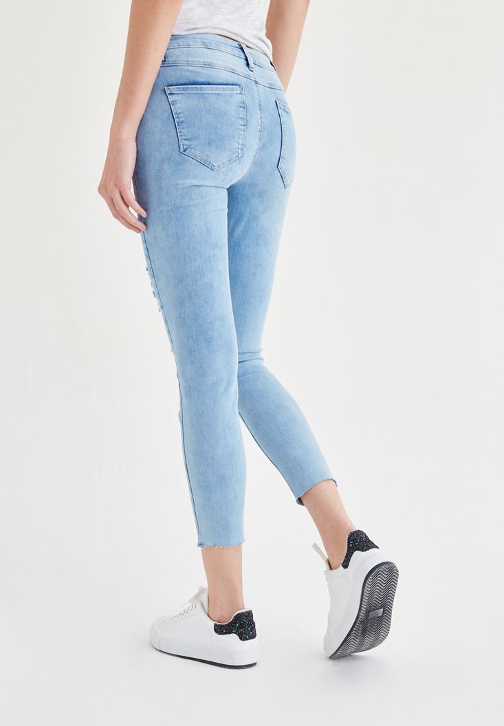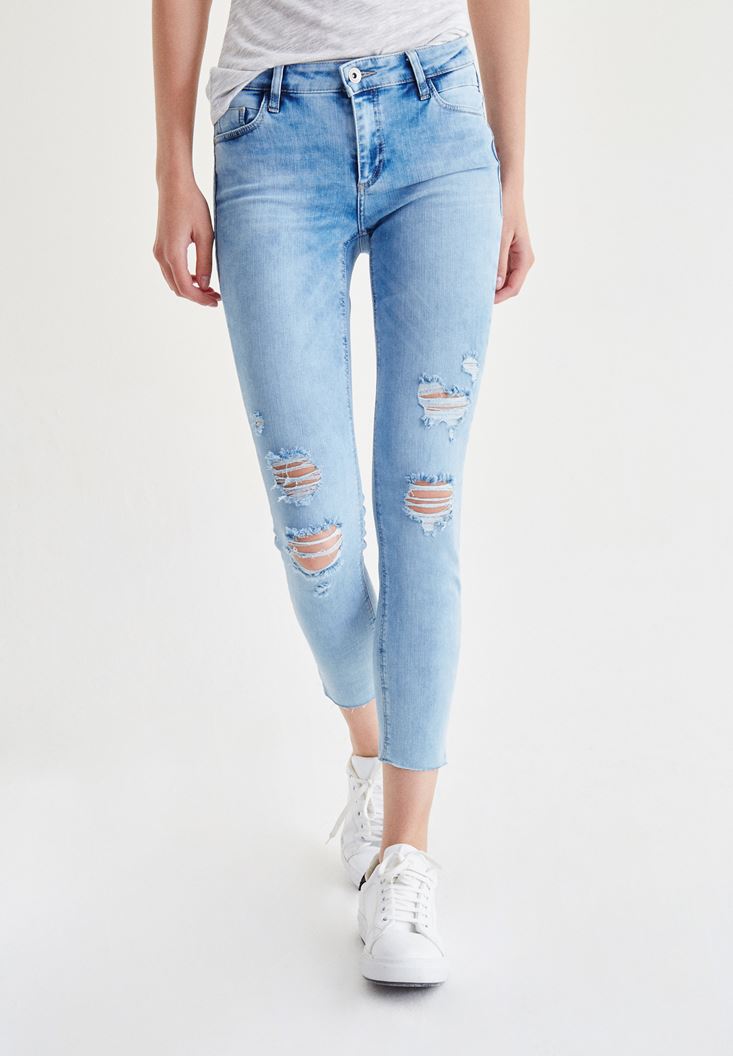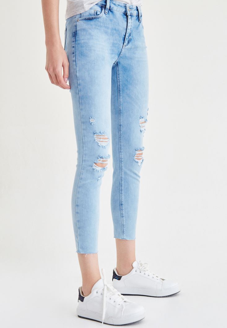 • Bayan Mavi Dizi Yırtık Jean