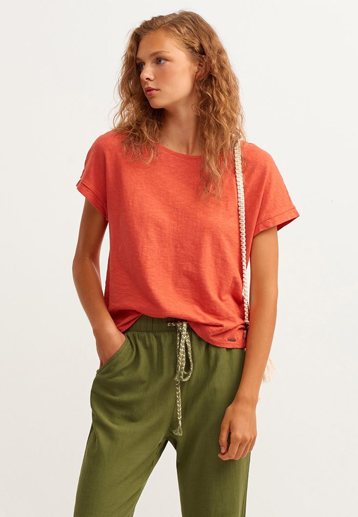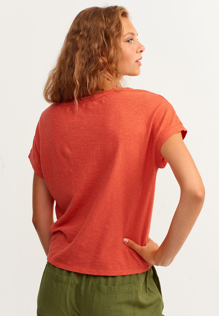 Kırmızı Doğal Dokunuş Keten Tişört