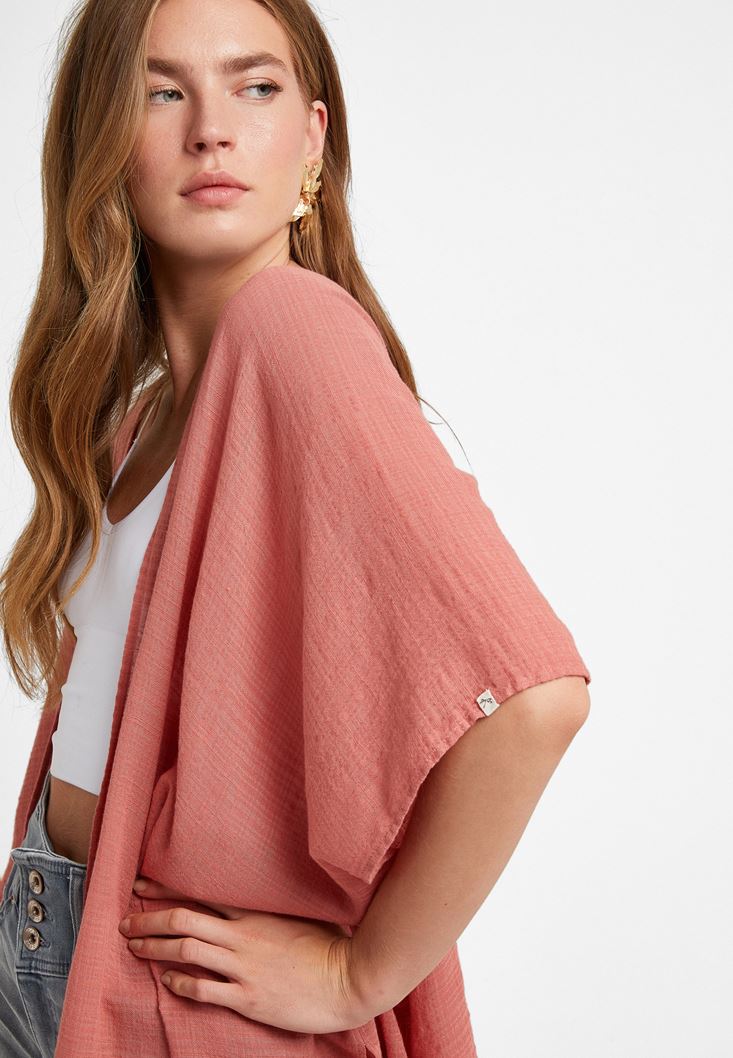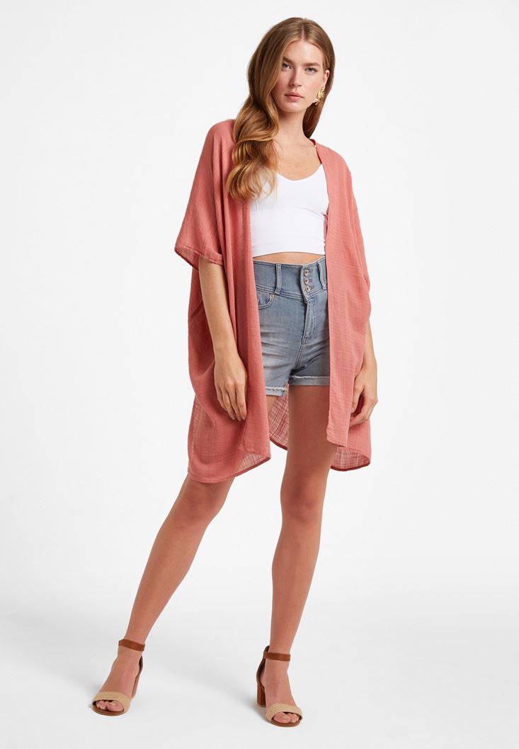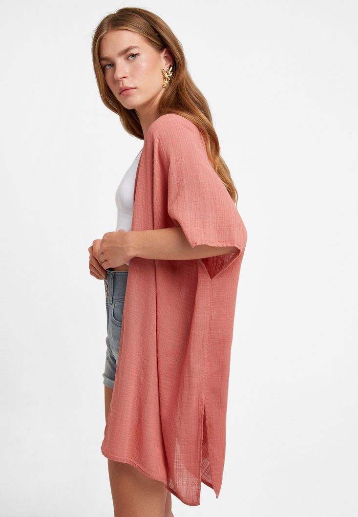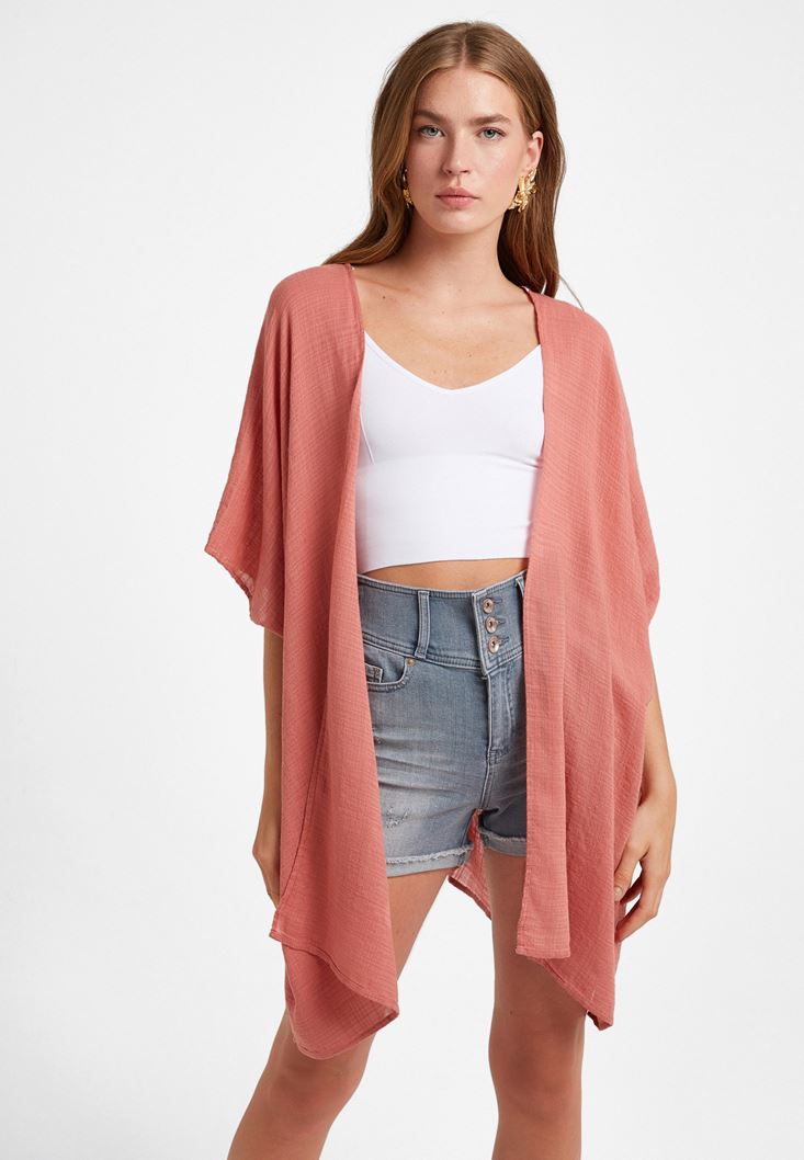 Doğal Görünümlü Kimono modeli, pamuk ve viskon karışımlı yumuşacık dokusu ile yeni sezonda karşınıza çıkıyor. kadın kimono modeli, oversize kalıbı ve yarım kol kesimi sayesinde sizleri rahat kullanımla buluşturuyor. Doğal görünümlü kimono modeli, sırt kısmında yer alan V şeklindeki görünümle benzerleri arasında fark yaratıyor. kadın kimono modelini, konforu ve şıklığı bir arada yakalayacağınız kombinler için tercih edebilirsiniz. Kadın kimono modeli ile crop atletler veya tişörtler kullanarak iddialı görünümlere ulaşabilirsiniz. kadın kimono modeliyle bol pantolonları veya mini şortları bir araya getirerek dikkat çeken kombinler yapabilirsiniz. Oxxo'nun benzersiz ve iddialı ayrıntılarla sizlere sunduğu kadın kimono modelleri ile sezon modasında tarzınızı yansıtabilirsiniz.