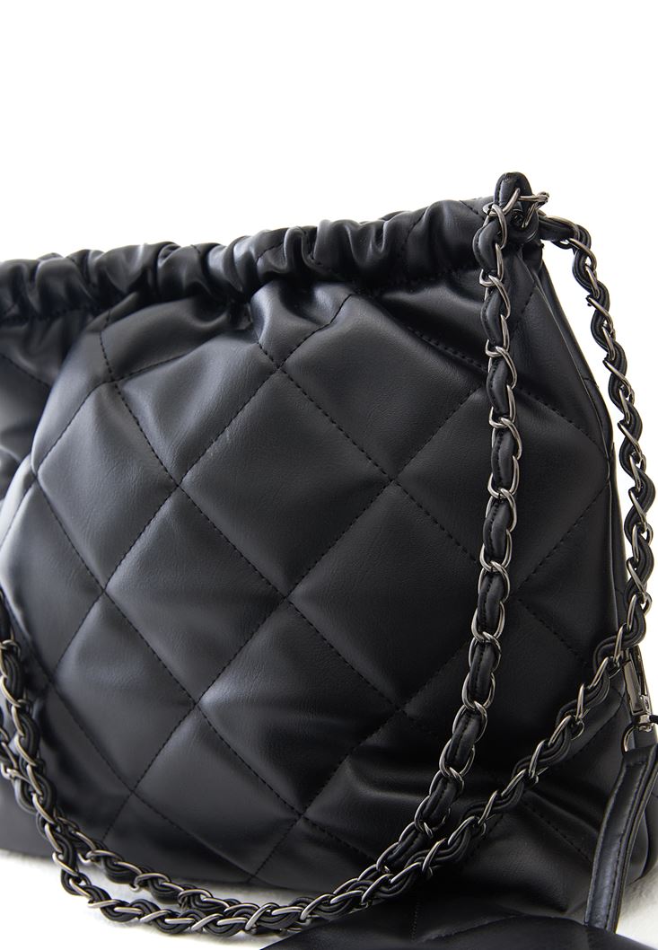 Siyah Dokulu Askılı Çanta