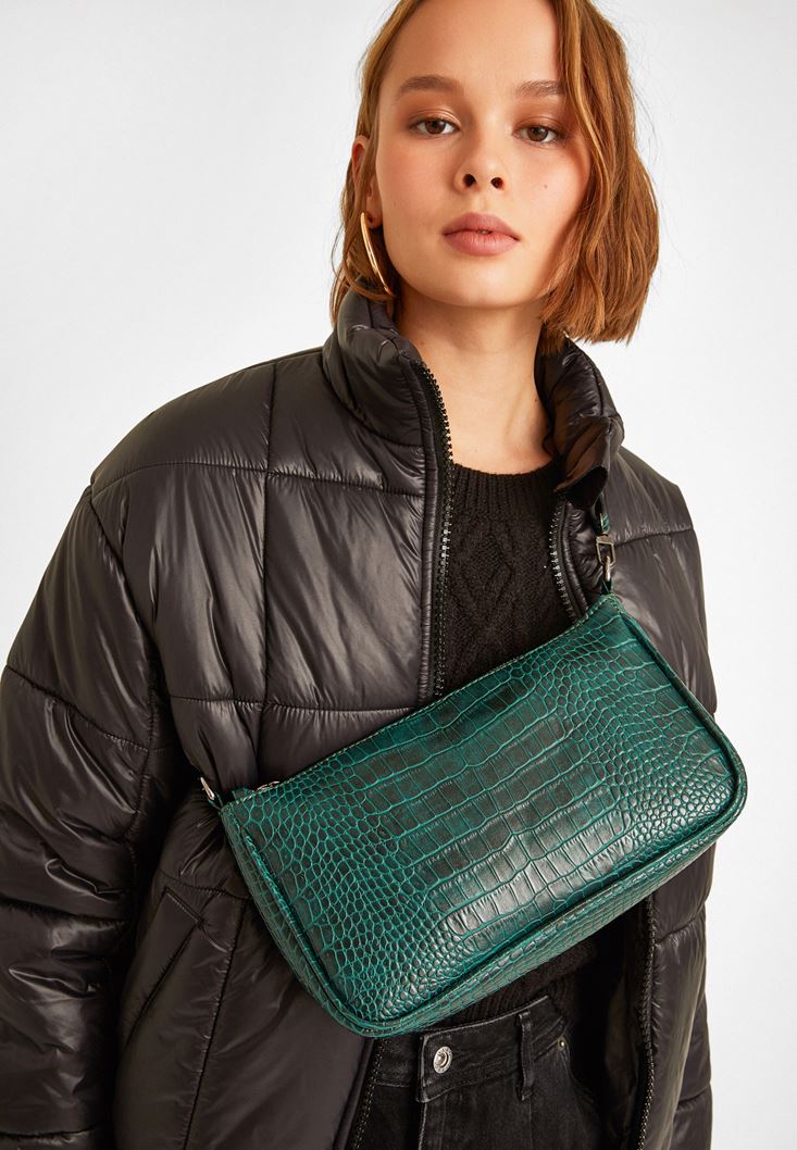 Dokulu Baget Çanta modeli, 90'lı yılların modasına geri döndüren görünümüyle yeni sezonda sizlere sunuluyor. Kadın çanta modeli, sezon trendi olan baget formunu sizlerle buluşturuyor. Baget çanta modeli, deri dokulu yapısının yanı sıra kısa askısıyla da ön plana çıkıyor. Kadın çanta modeli ile tamamlanan kombinler sayesinde moda dünyasının ritmini yakalamak kolaylaşıyor. Baget çanta modelini, oversize ceketler ve kabanlarla kullanarak nostaljik görünümlere ulaşabilirsiniz. Ayrıca deri botlarla da tercih edebileceğiniz baget çanta modeli ile tarzınıza şıklık katabilirsiniz. Oxxo'nun küçük detaylarla büyük etki yaratan kadın çanta modelleriyle kombinlerinizi dilediğiniz gibi şekillendirebilirsiniz.